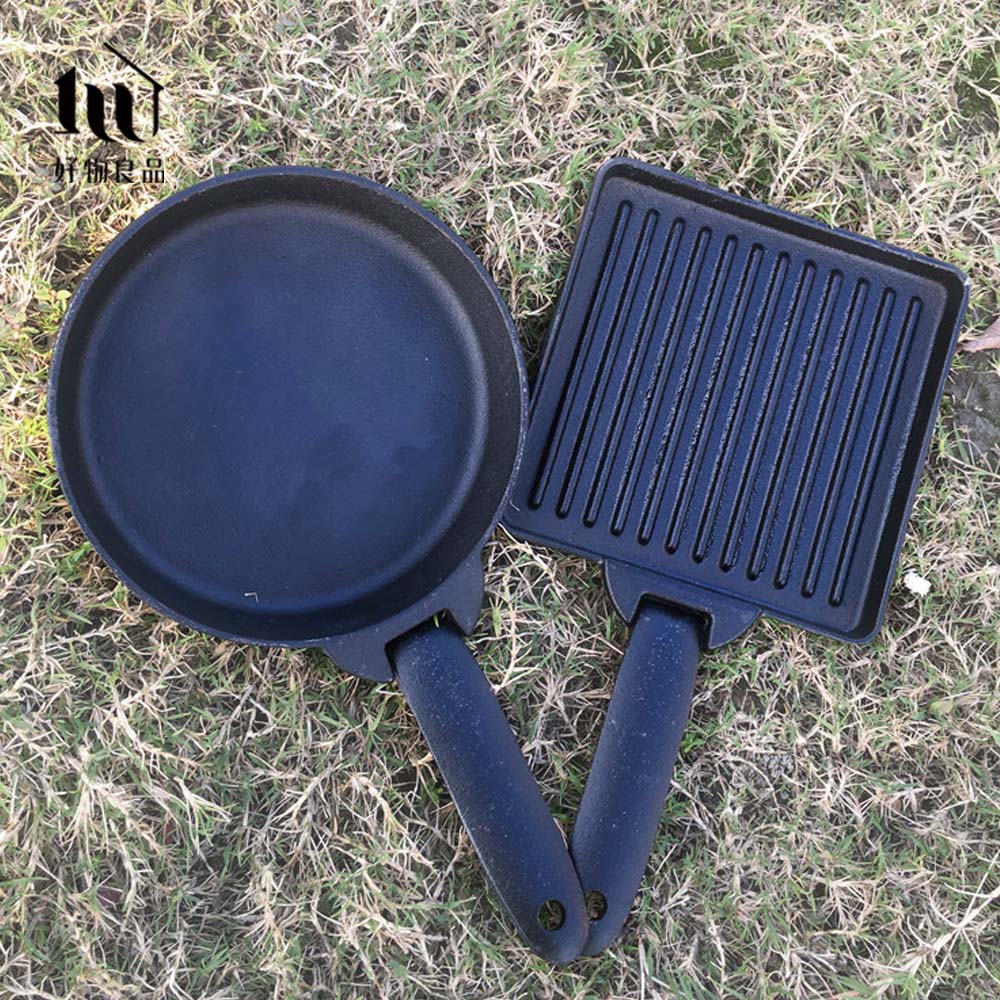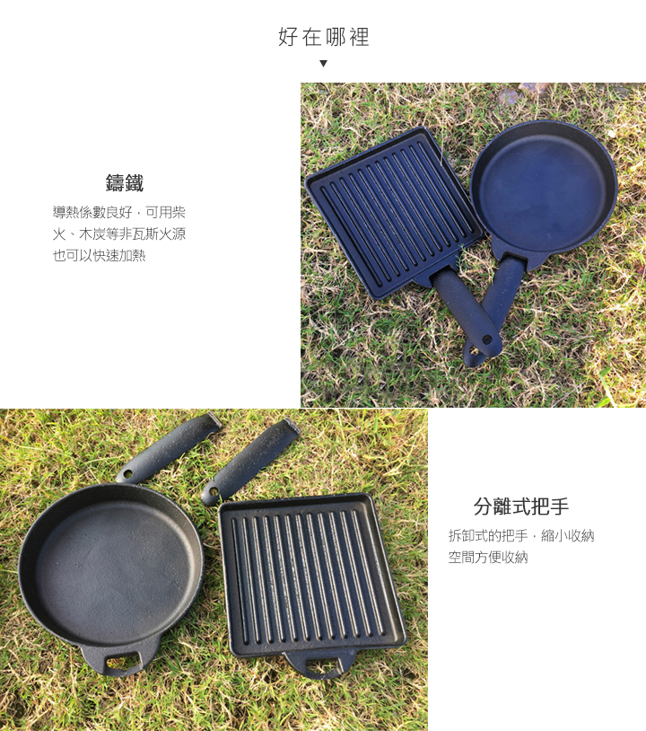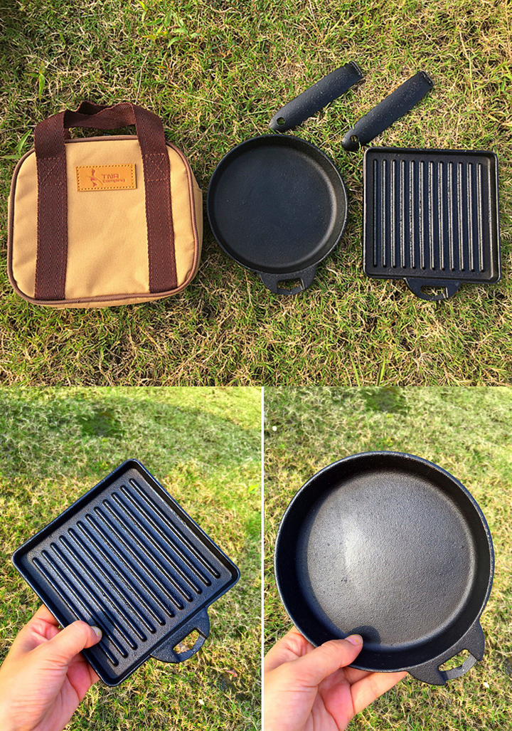 露營專用折疊鑄鐵煎鍋盤套二入組(直徑15公分)露營烤盤 小型煎盤 戶外煎盤