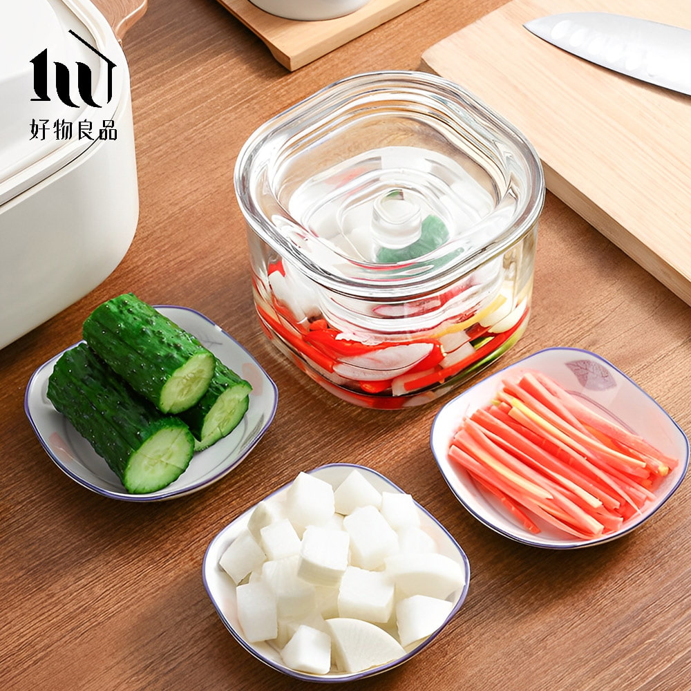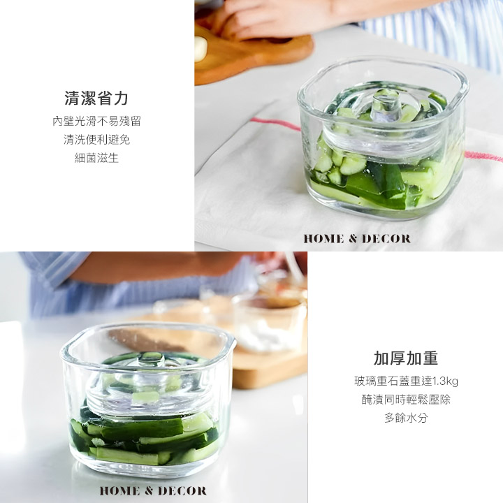 • 重石壓蓋-重石玻璃蓋用於壓住食物,使漬物完全入味