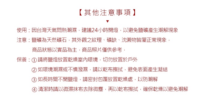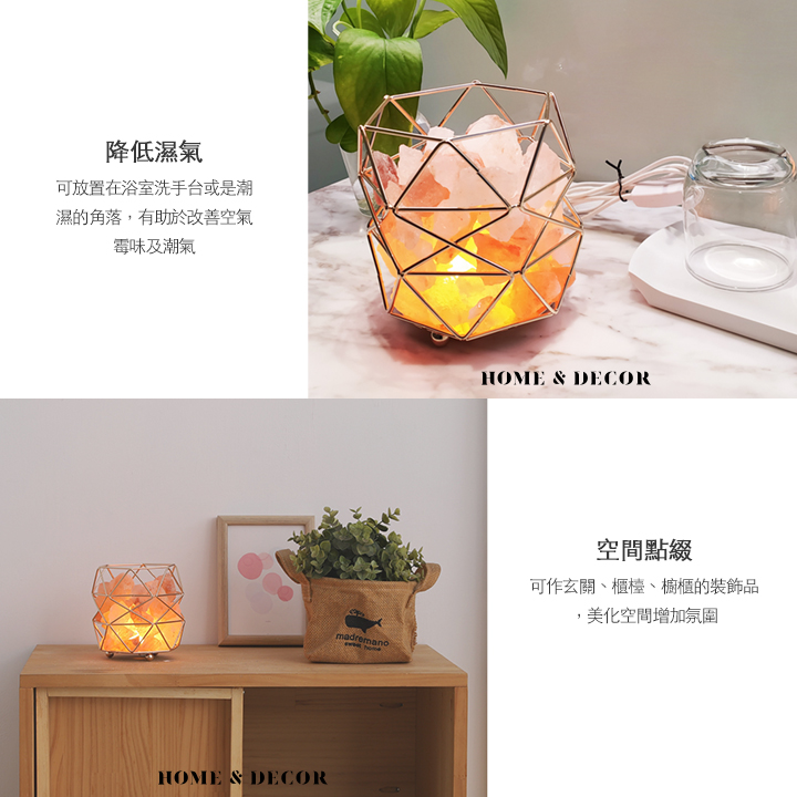 • 淨化空氣-鹽燈加熱原理可搭配香氛做擴香石,釋放的負離子改善空氣品質,放鬆又療癒