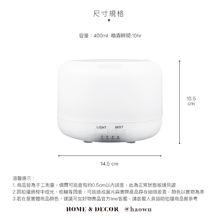 • 低分貝靜音工作,小夜燈功能,幫助您溫馨入眠。
