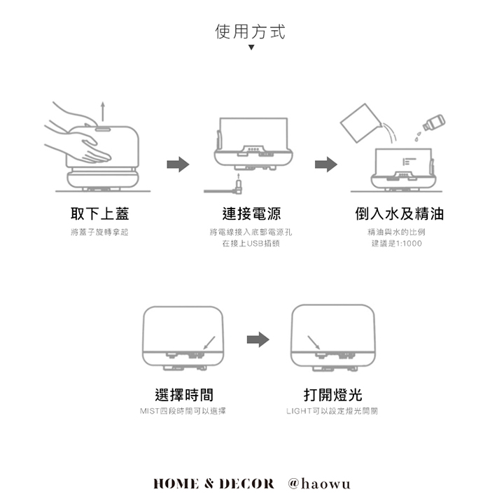 • 柔和霧化-超音波霧化不會弄濕桌面或是週遭物品,細化水氣提升加濕效率。