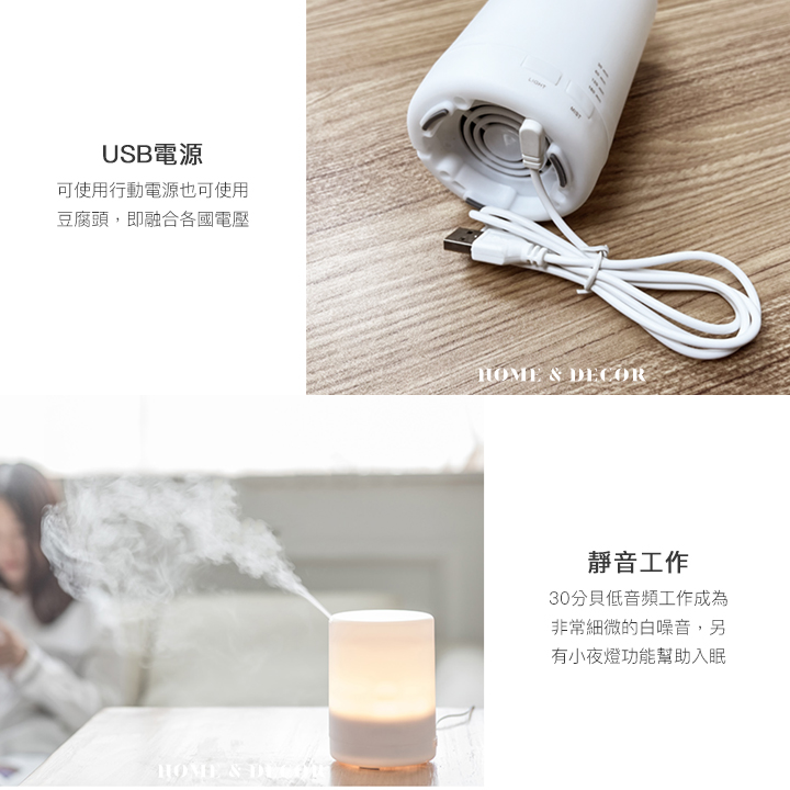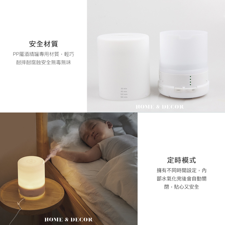 • 靜音工作-30分貝低音頻工作成為非常細微的白噪音,另有小夜燈功能幫助入眠。