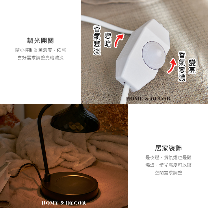 • 調光開關-隨心控制溫度香薰濃度,依照喜好需求調整亮暗