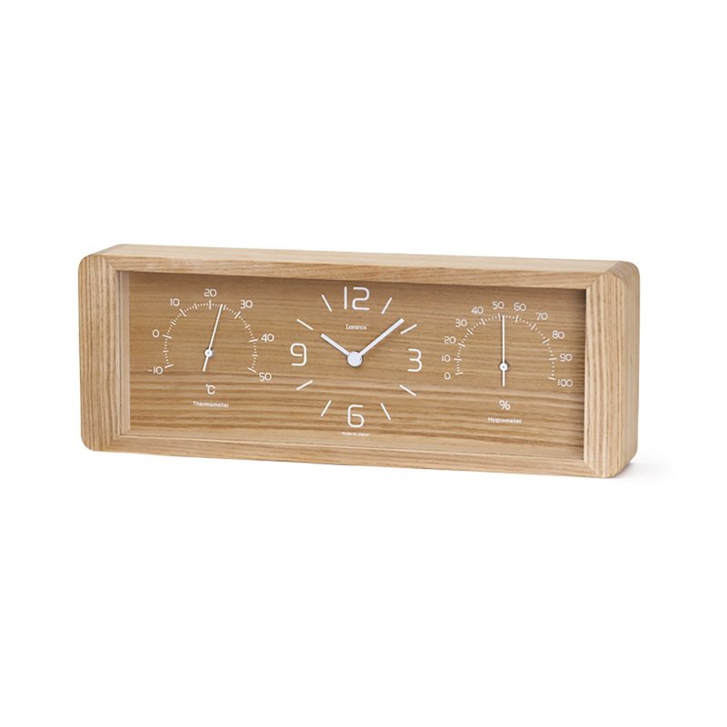 由日本設計師奈良雄一設計。Yokan為集合溫度 濕度 及時間的桌鐘。由Lemnos富山縣高崗市製鐘工匠手製。