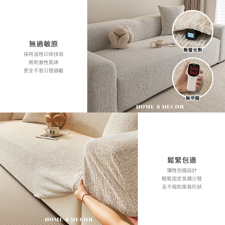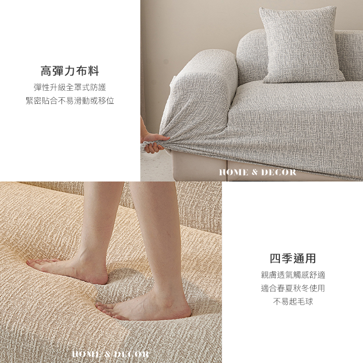 • 鬆緊包邊-方便固定及套住任何不規則形狀的沙發或是家具