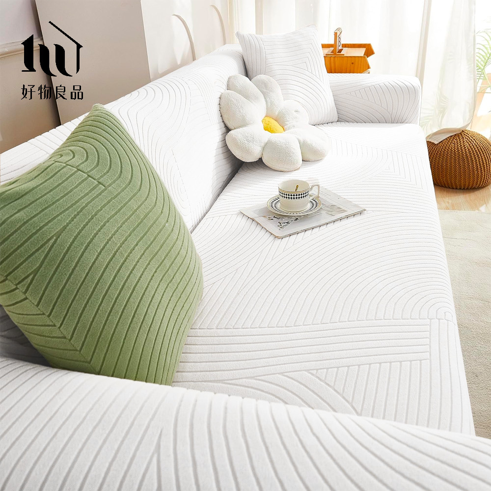 抽象藝術系列《雪白色》防貓抓系列高彈力立體提花彈力沙發罩|贈抱枕套*1+泡棉條