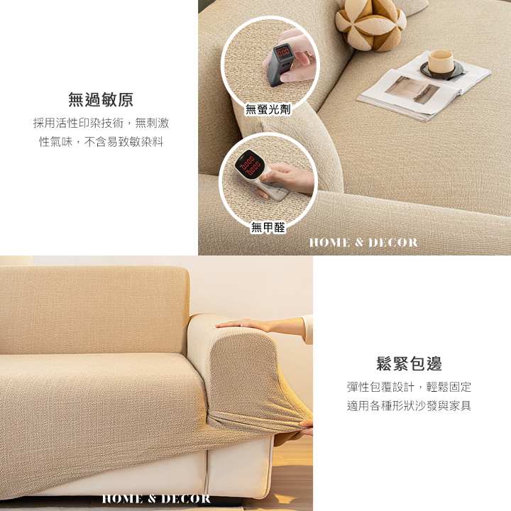 • 鬆緊包邊-方便固定及套住任何不規則形狀的沙發或是家具