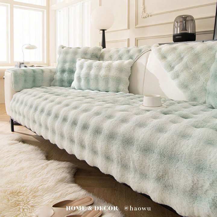 《南法香頌》雙色扎染輕奢高密度毛絨保暖沙發墊