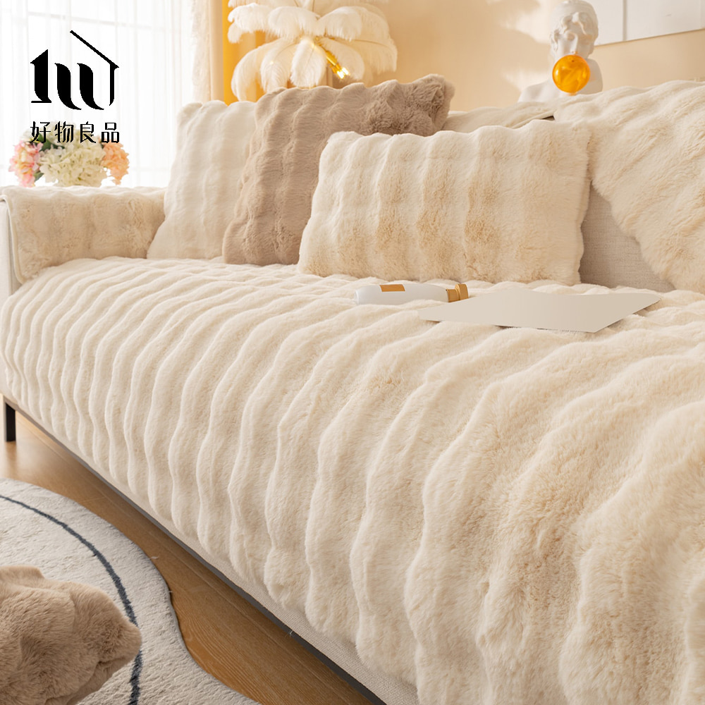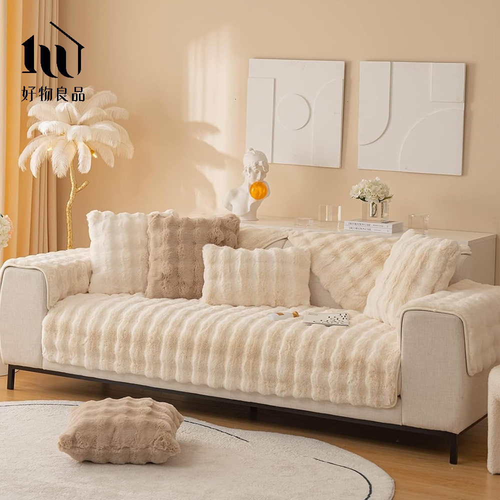 《米白色》輕奢高密度毛絨保暖沙發墊