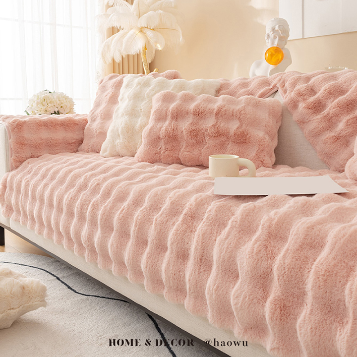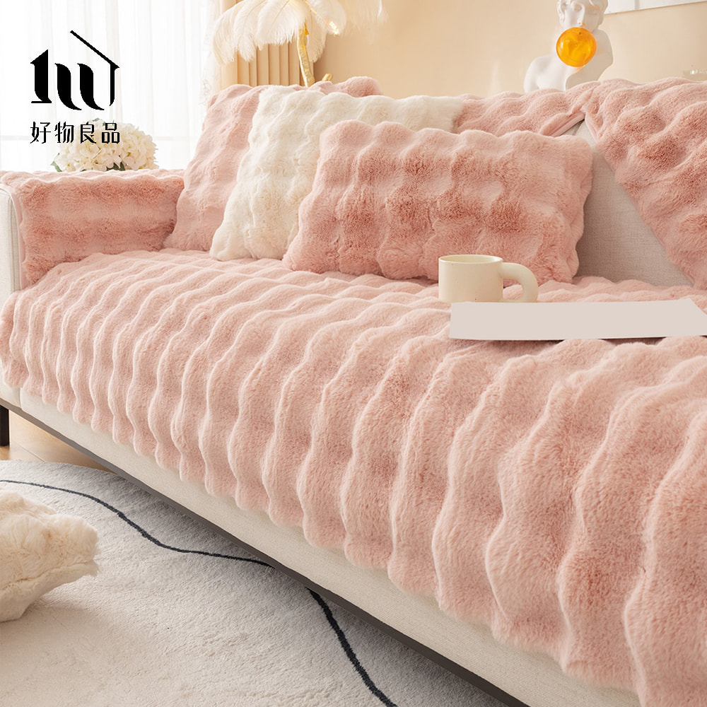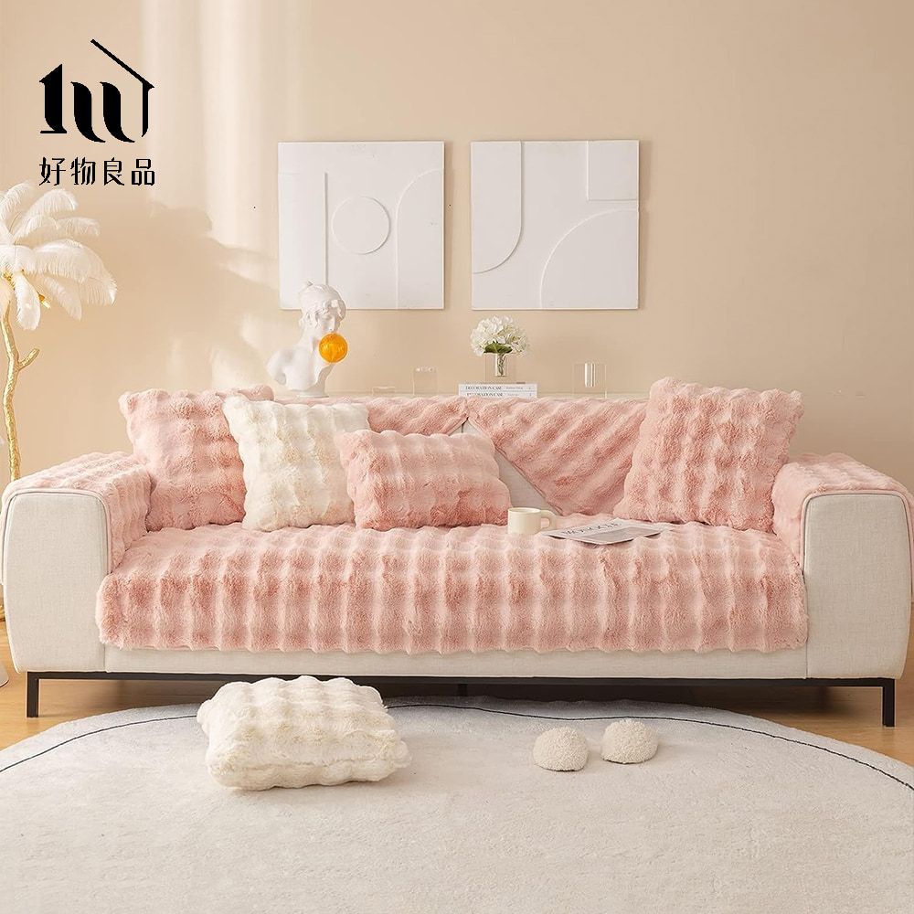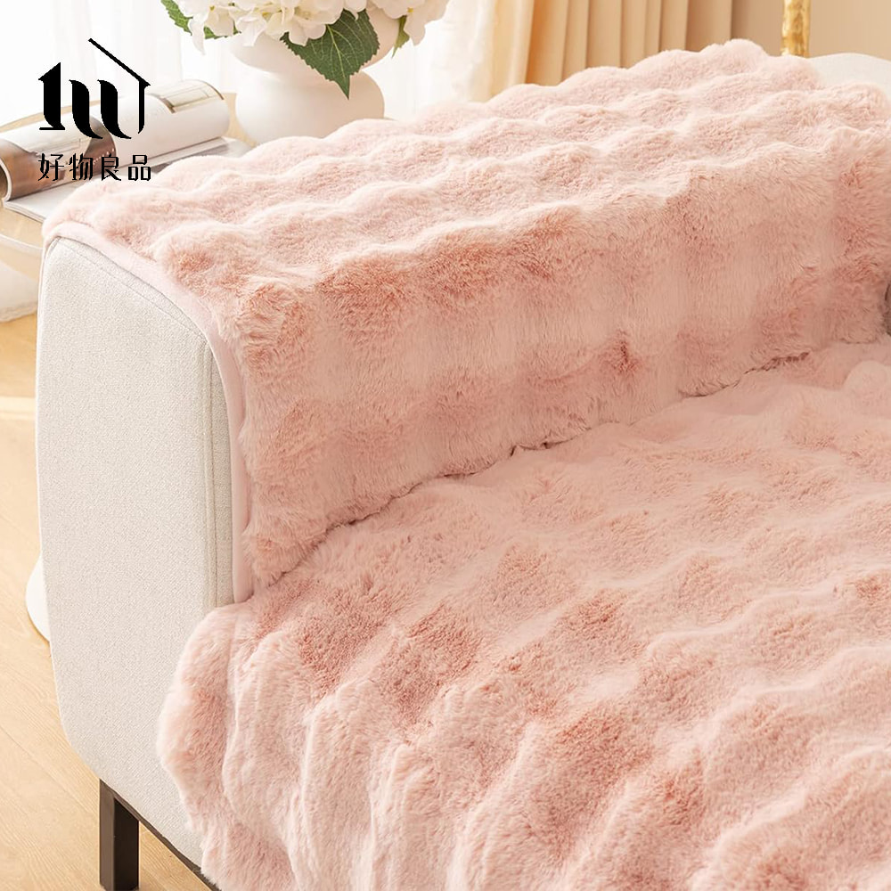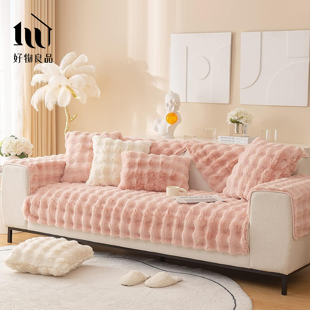 《櫻花粉》輕奢高密度毛絨保暖沙發墊