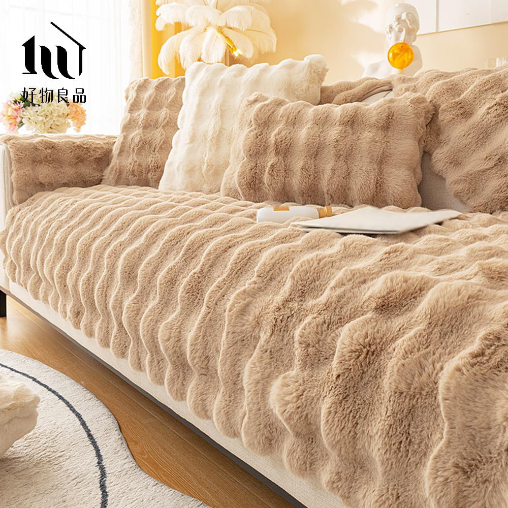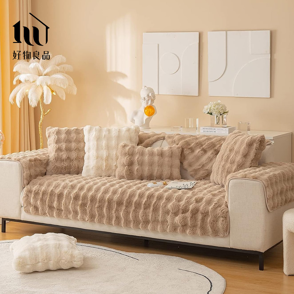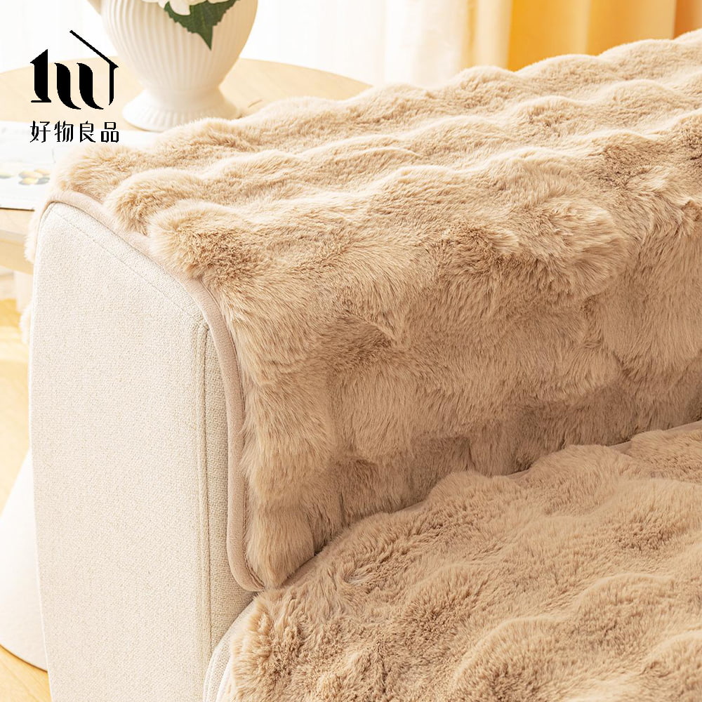 《淺咖啡》輕奢高密度毛絨保暖沙發墊