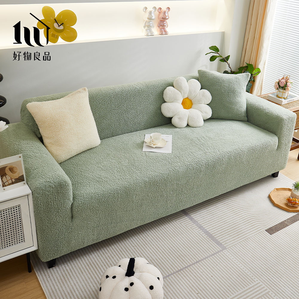 短毛保暖系列《抹茶綠》防貓抓系列高彈力立體提花彈力沙發罩|贈抱枕套*1+泡棉條