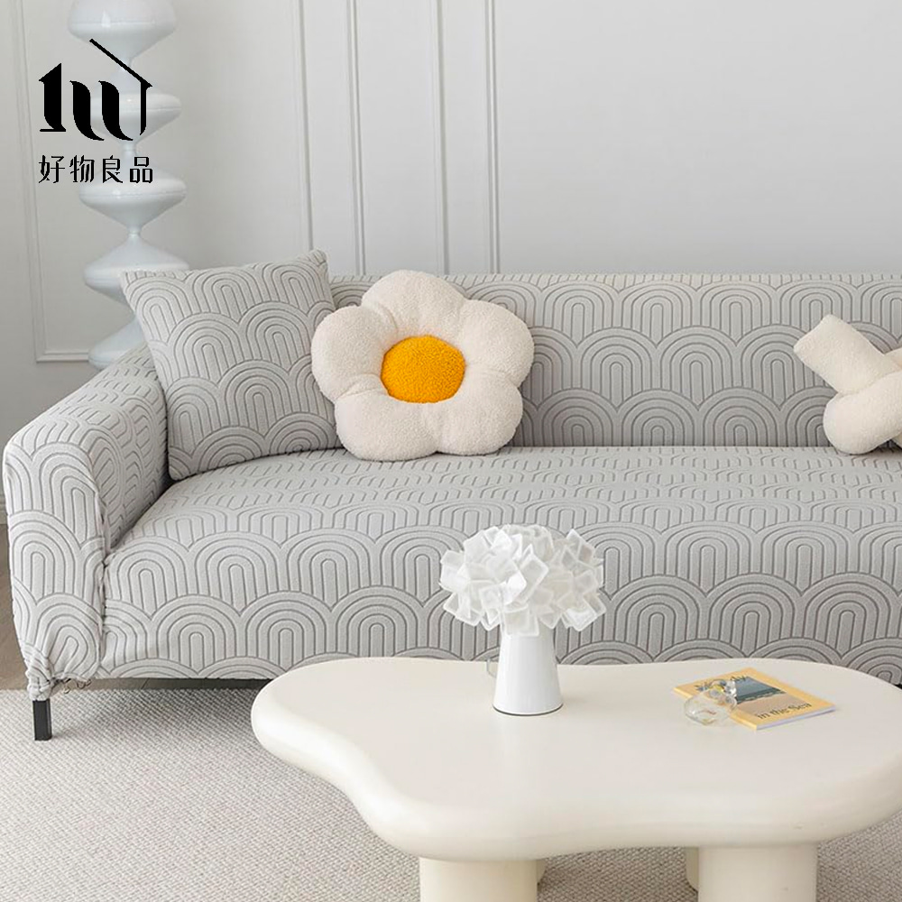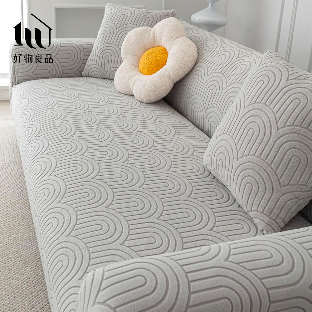 幾何波紋系列《灰色》四季通用高彈力立體提花彈力沙發罩|贈抱枕套*1+泡棉條