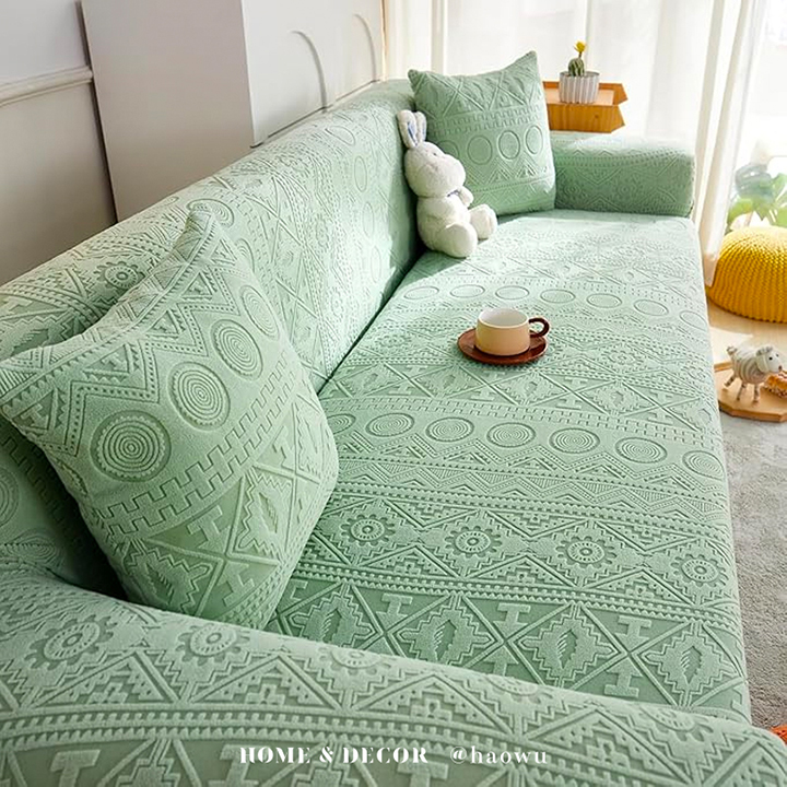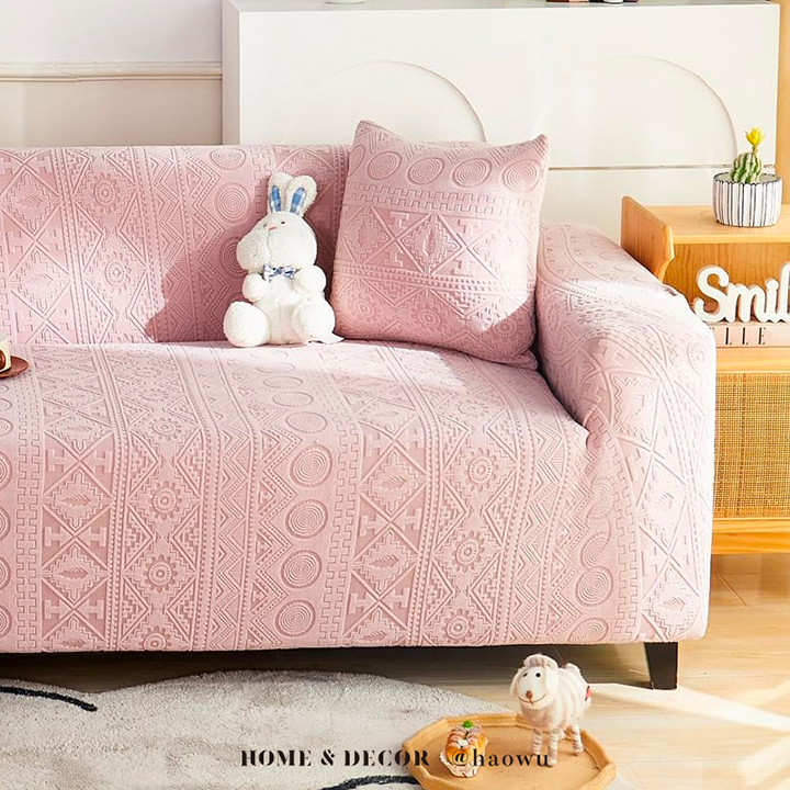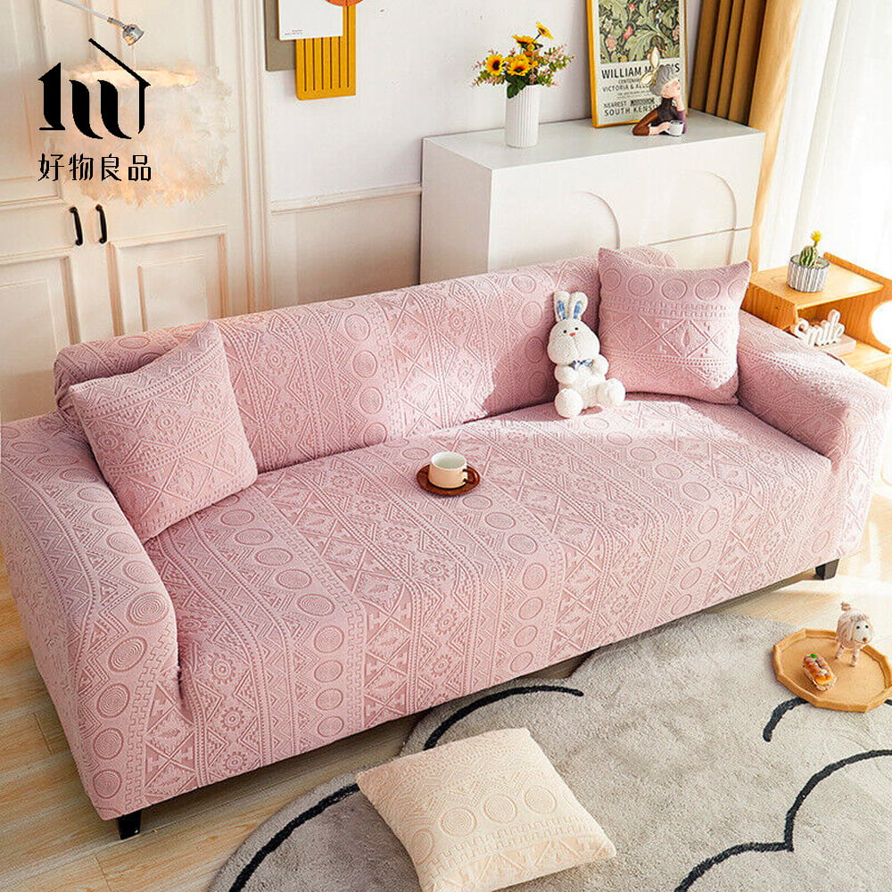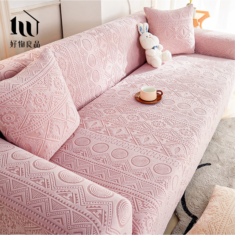 波西米亞系列《粉色》四季通用高彈力立體提花彈力沙發罩|贈抱枕套*1+泡棉條