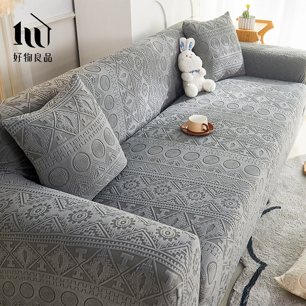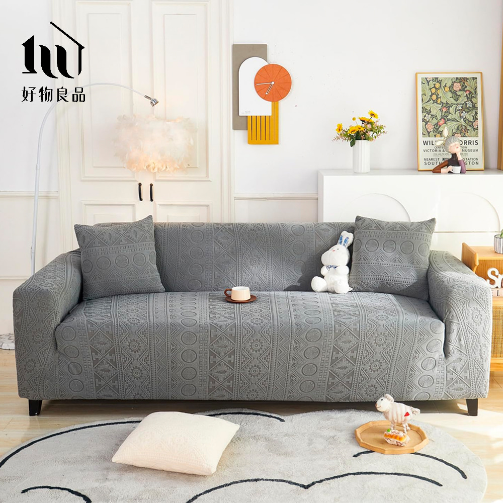波西米亞系列《灰色》四季通用高彈力立體提花彈力沙發罩|贈抱枕套*1+泡棉條