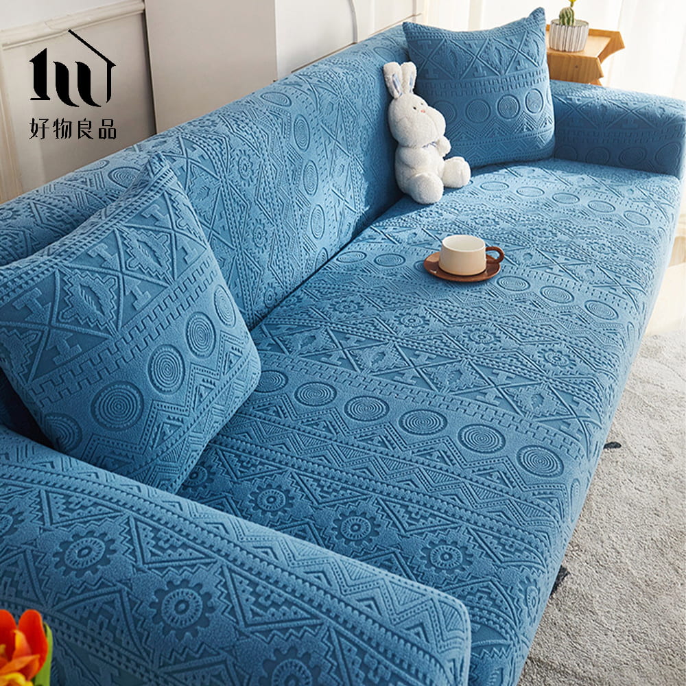 波西米亞系列《藍色》四季通用高彈力立體提花彈力沙發罩|贈抱枕套*1+泡棉條
