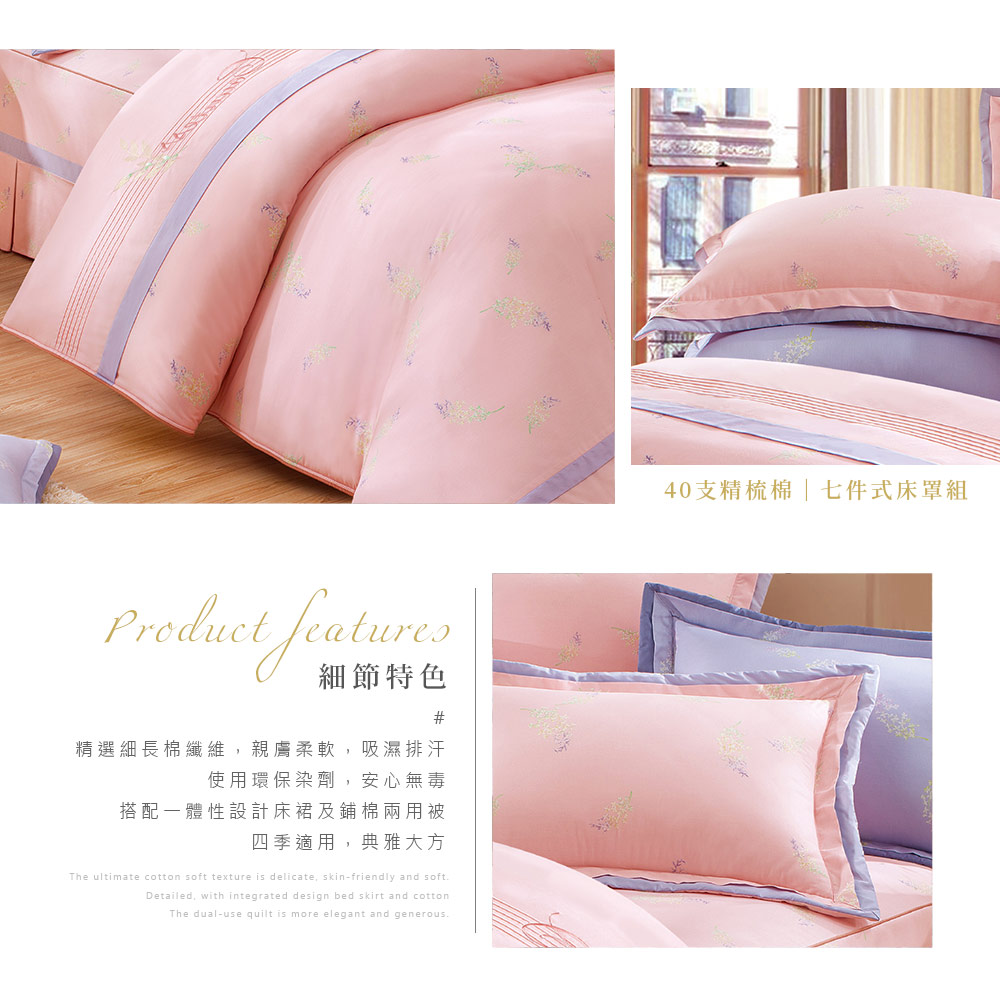 【DUYAN 竹漾】雙人/加大 - 七件式床罩 / 40支精梳棉 / 邂逅柔情 台灣製