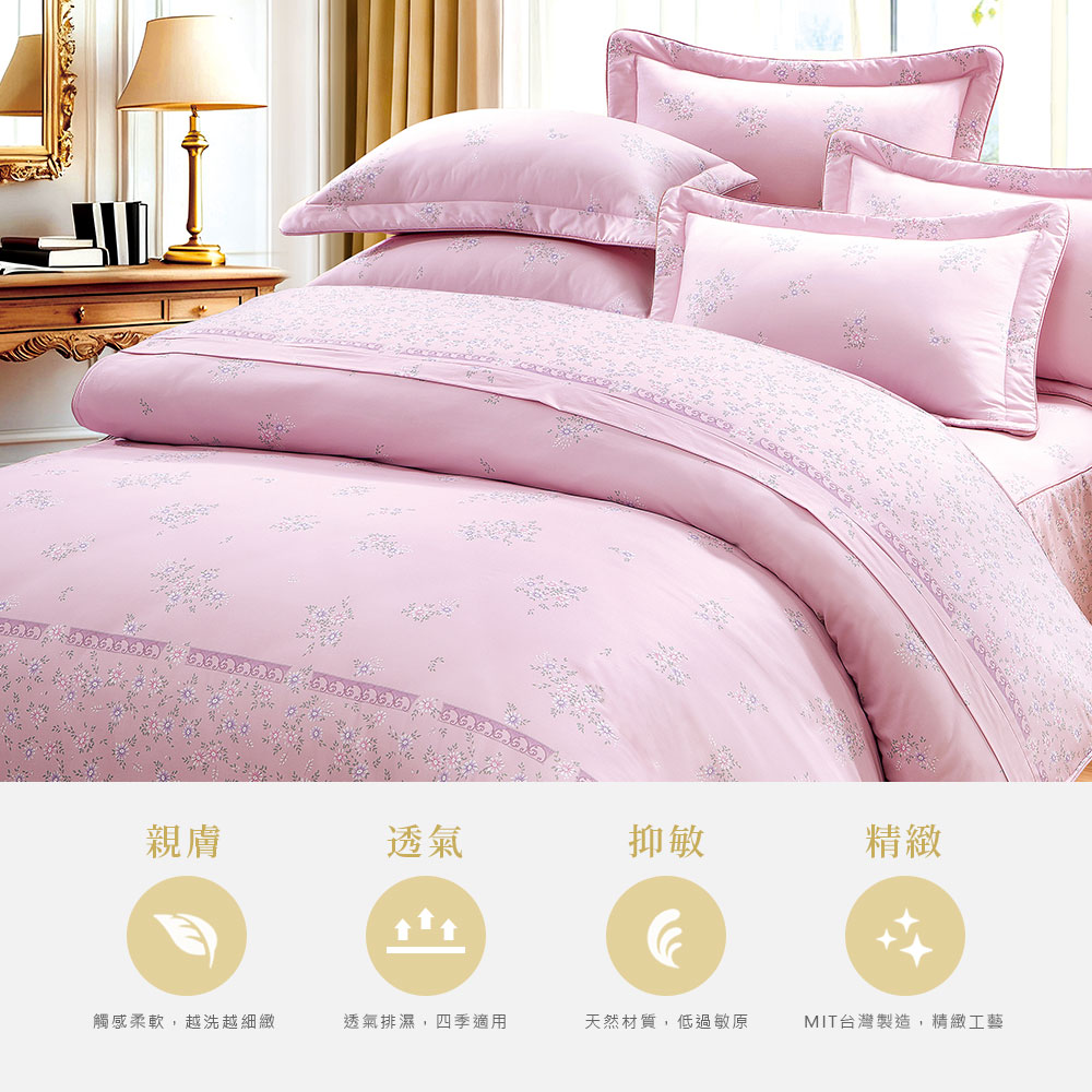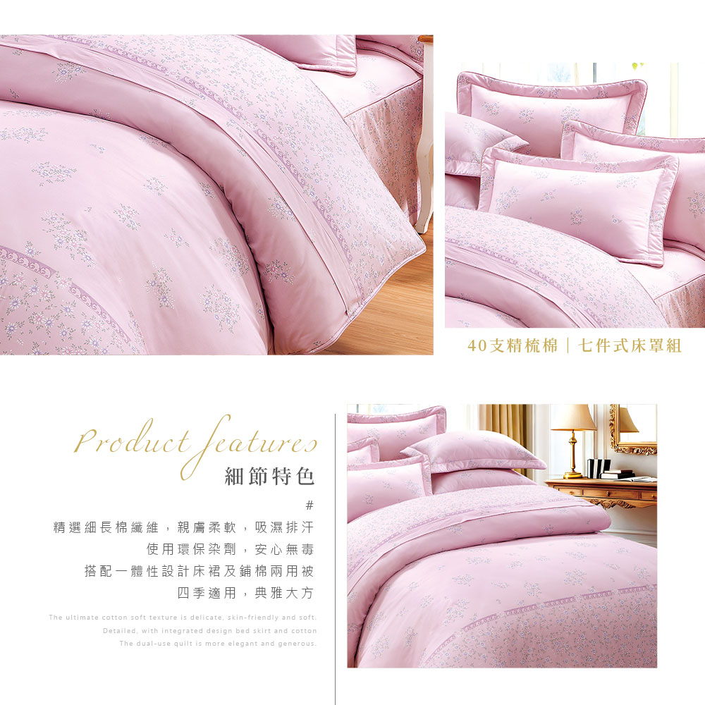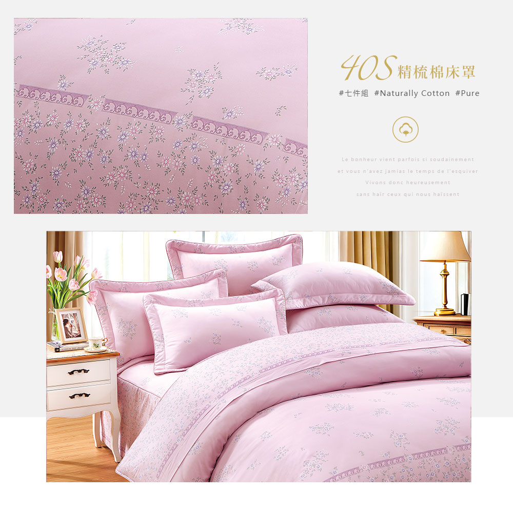 【DUYAN 竹漾】雙人/加大 - 七件式床罩 / 40支精梳棉 / 瑰語芳庭 台灣製