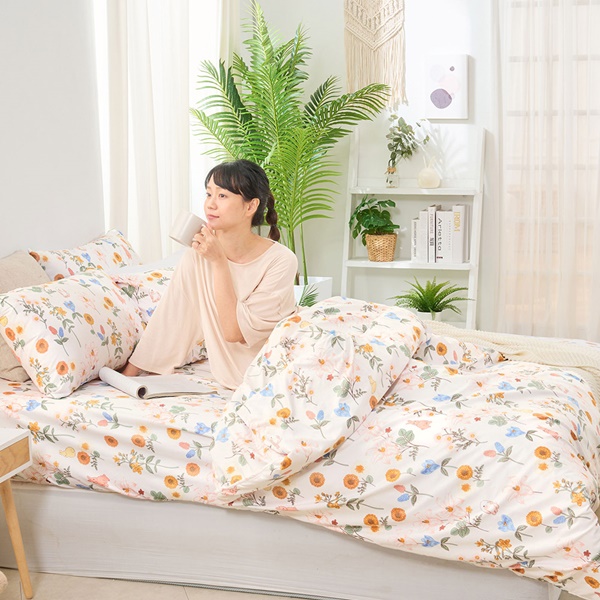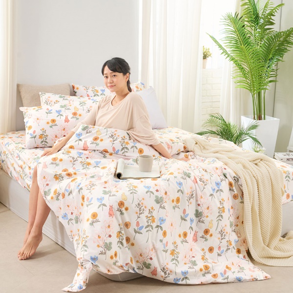 【DUYAN 竹漾】舒柔棉雙人加大床包涼被四件組 / 日葵小兔 台灣製