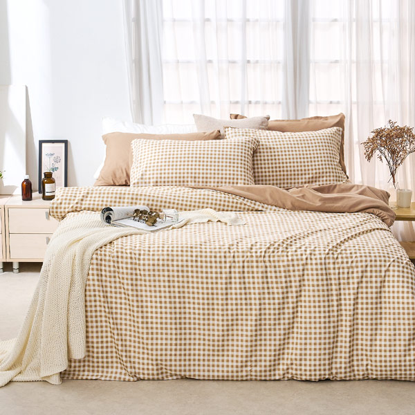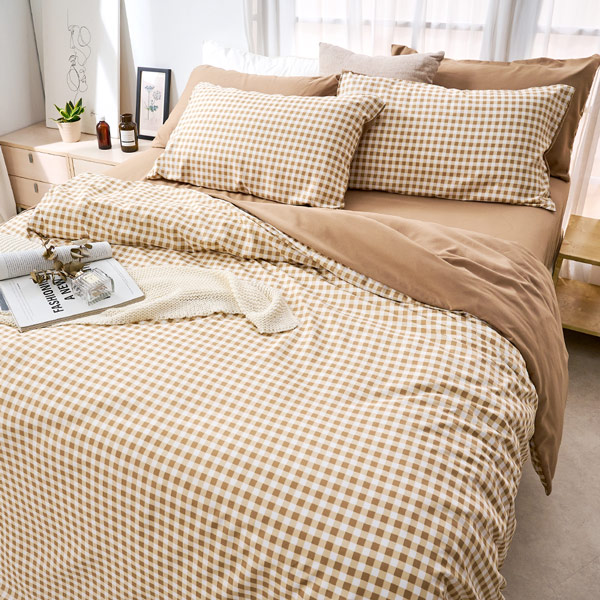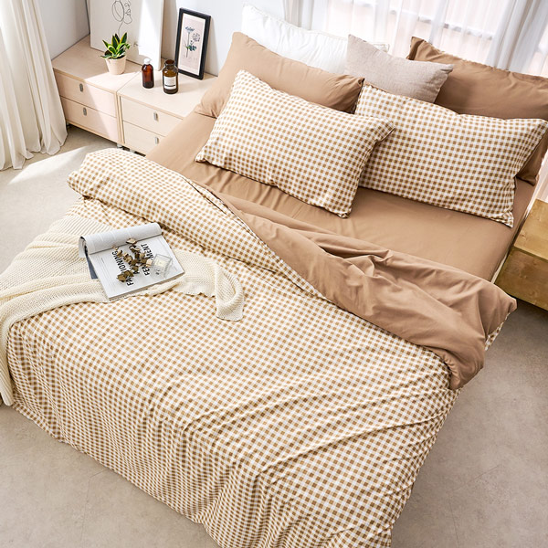 【DUYAN 竹漾】床包被套組(薄被套)-雙人加大 / 舒柔棉四件式 / 焦糖奶茶 台灣製