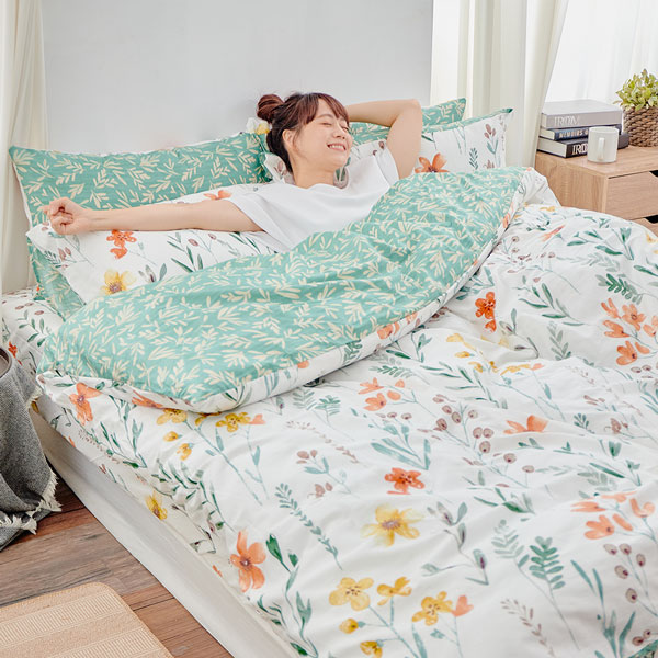 【DUYAN 竹漾】床包枕套組-雙人 / 精梳純棉三件式 / 初晨花語 台灣製