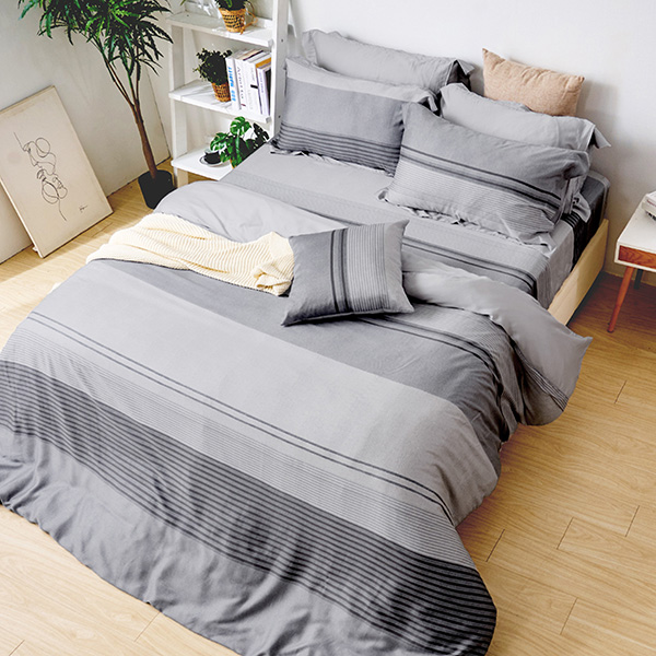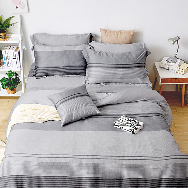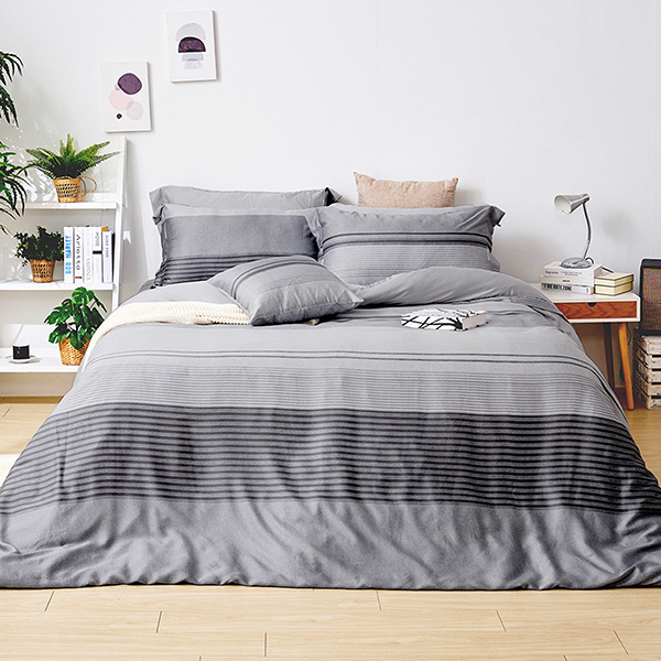 【DUYAN 竹漾】60支萊賽爾天絲雙人加大四件式鋪棉兩用被床包組 / 幽微暮灰 台灣製