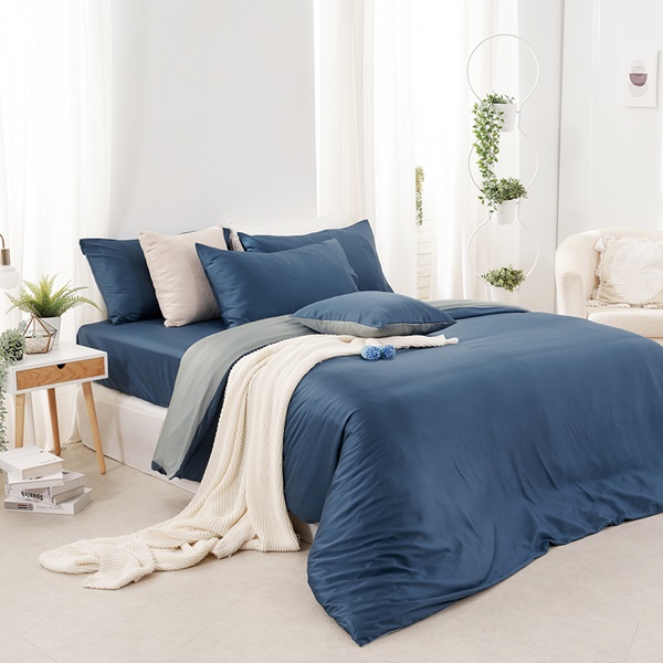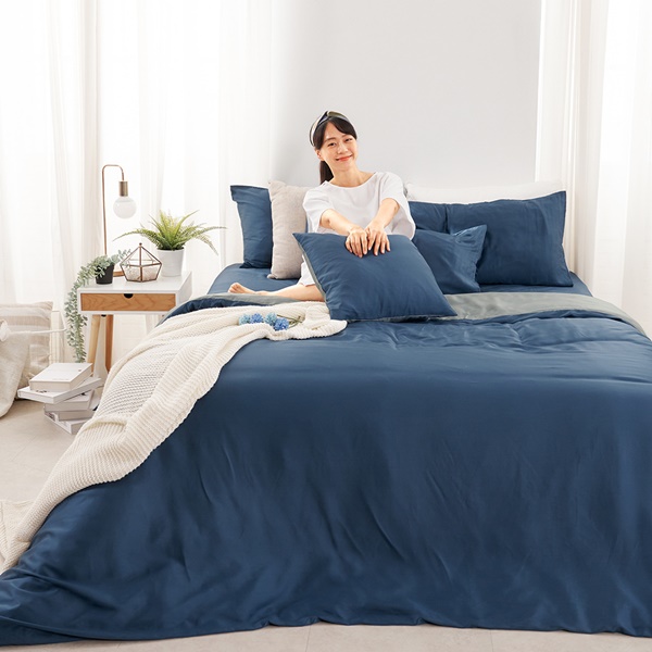 【DUYAN 竹漾】60支萊賽爾天絲雙人床包被套四件組 / 藍夜極光 台灣製