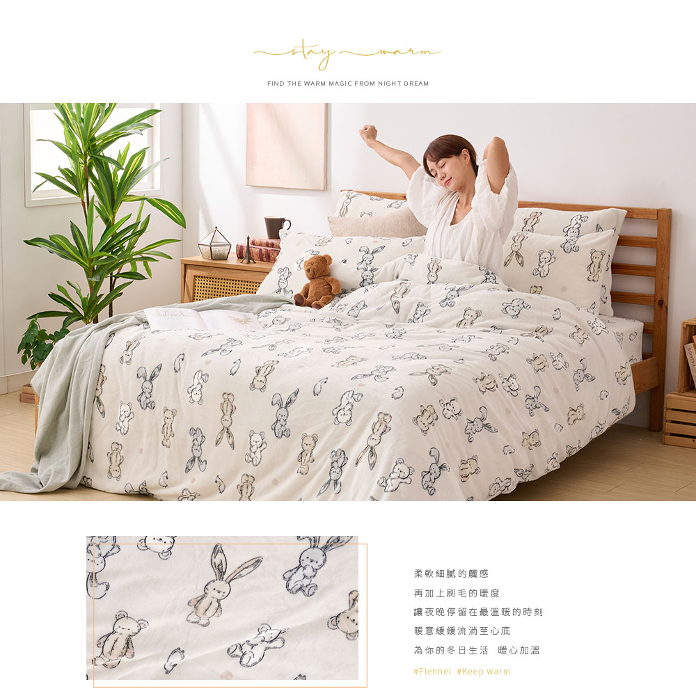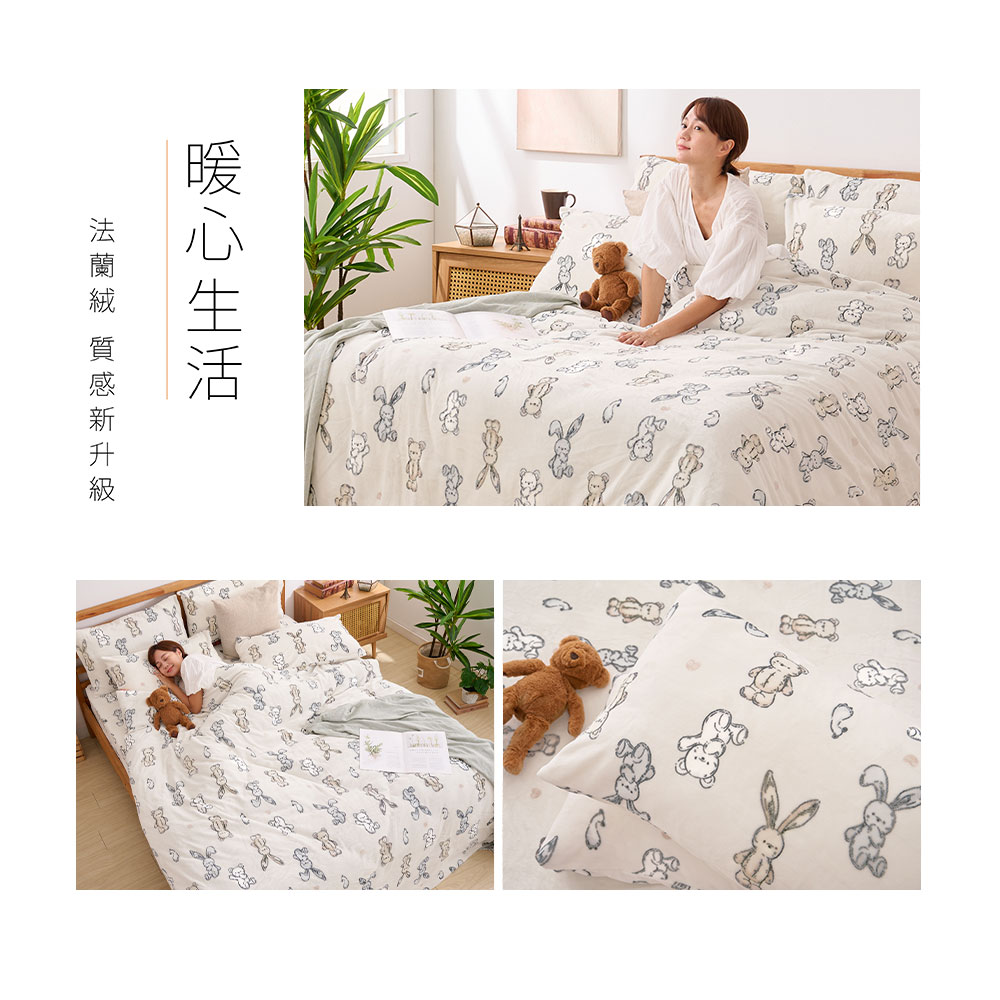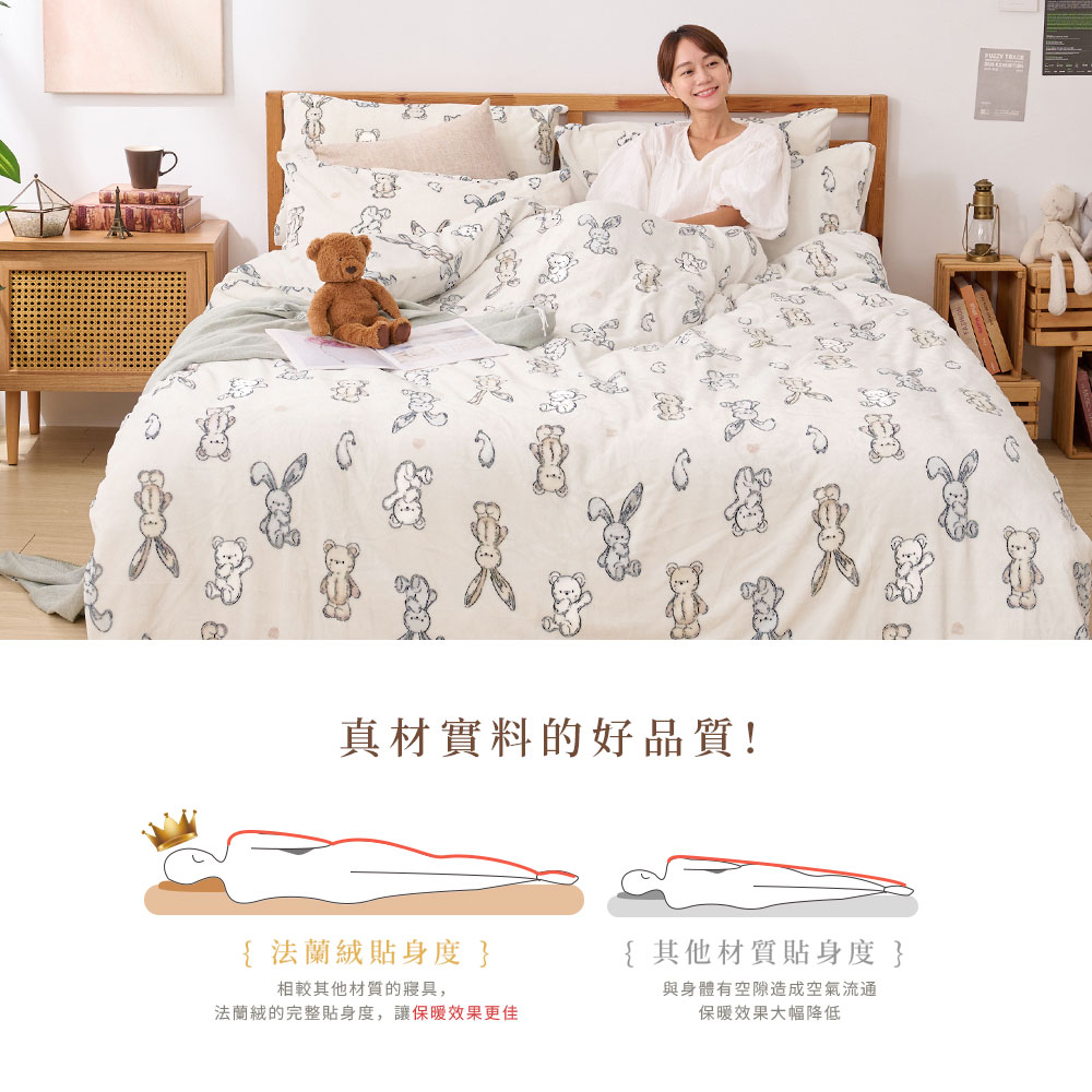【DUYAN 竹漾】法蘭絨雙人四件式床包兩用毯被組 / 小步舞曲