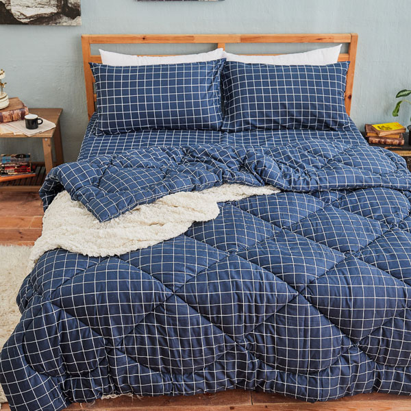 【DUYAN 竹漾】舒柔棉 雙人床包羽絲絨被組 / 格陵藍