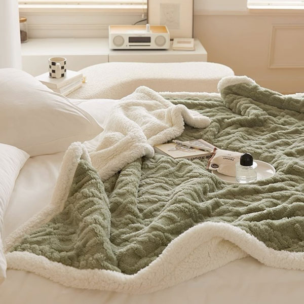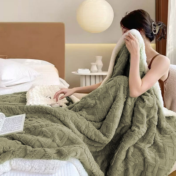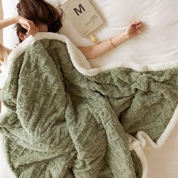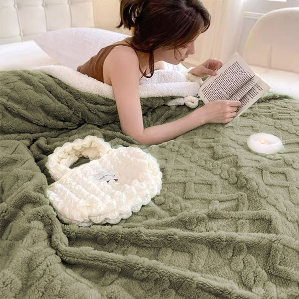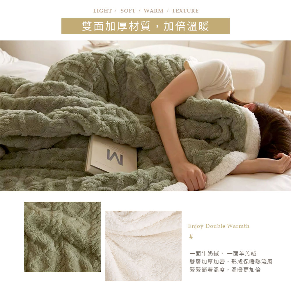 【DUYAN 竹漾】韓系麻花牛奶絨 雙層加厚被毯 / 橄欖綠