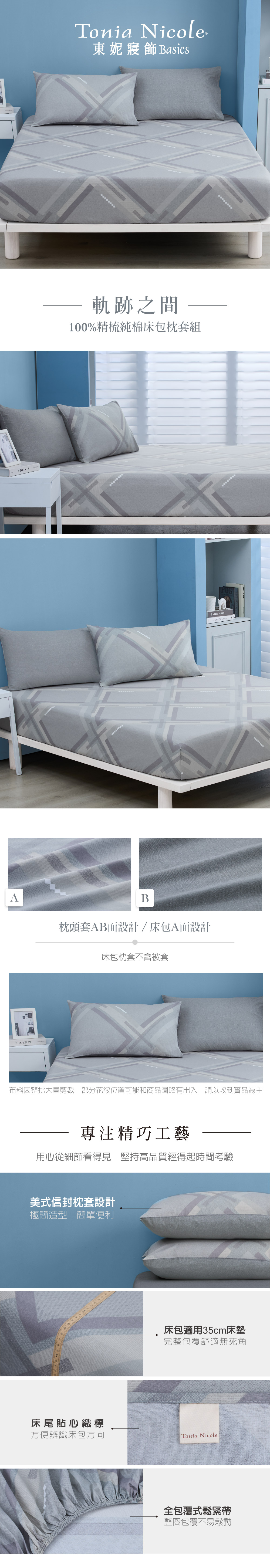【Tonia Nicole 東妮寢飾】軌跡之間100%精梳棉床包枕套組(加大)