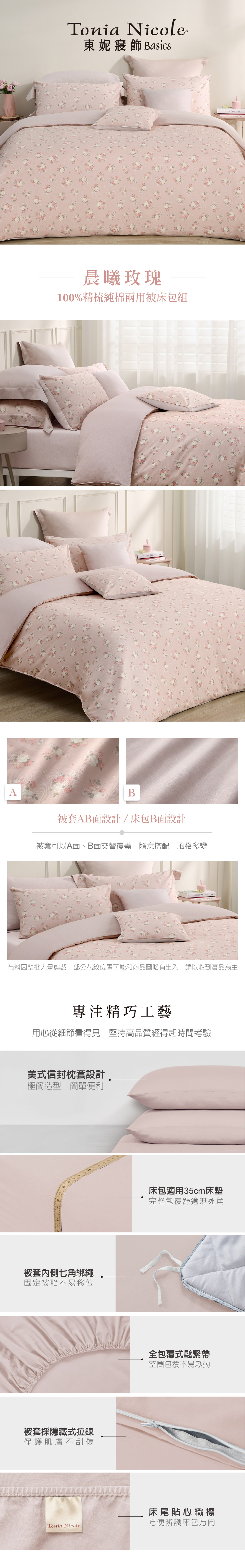 【Tonia Nicole 東妮寢飾】晨曦玫瑰100%精梳棉兩用被床包組(雙人)
