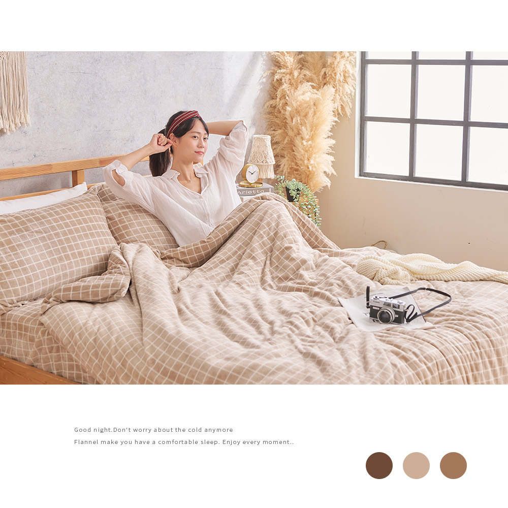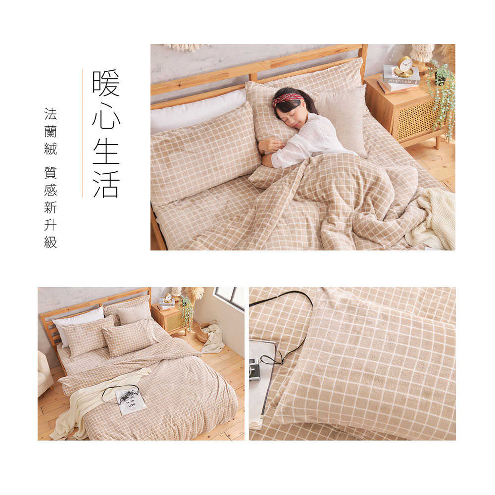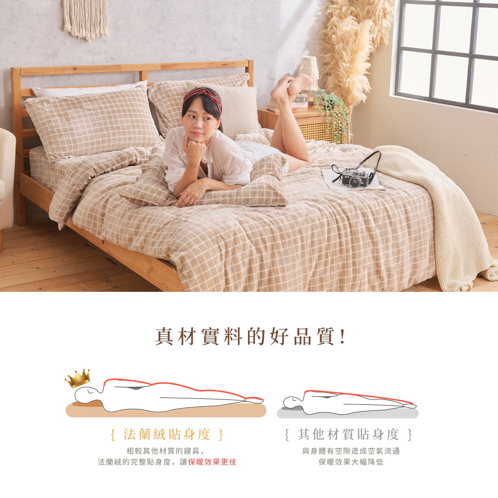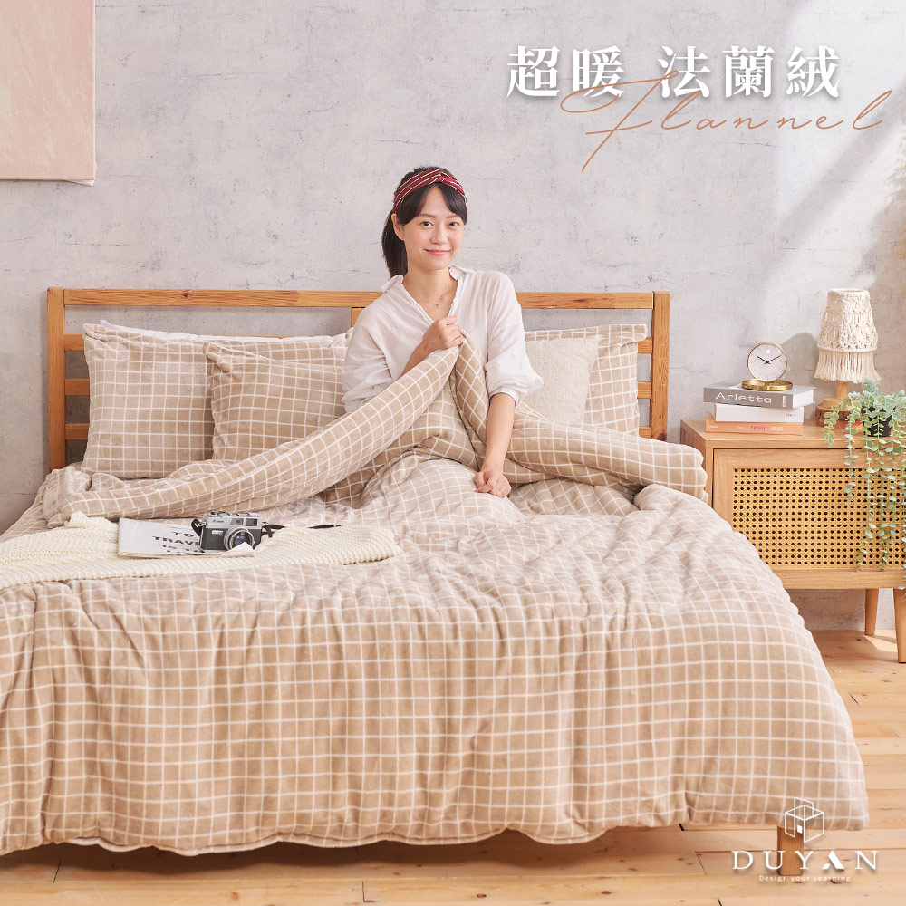 【DUYAN 竹漾】法蘭絨雙人四件式床包兩用毯被組 / 濃縮卡布