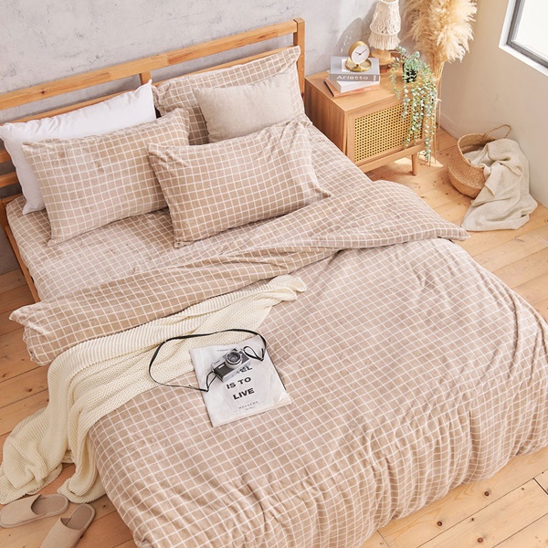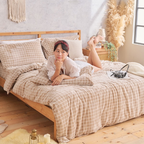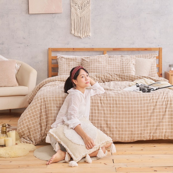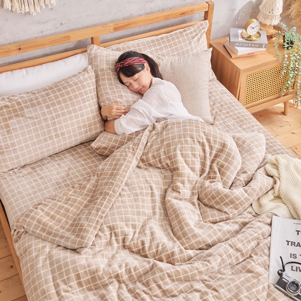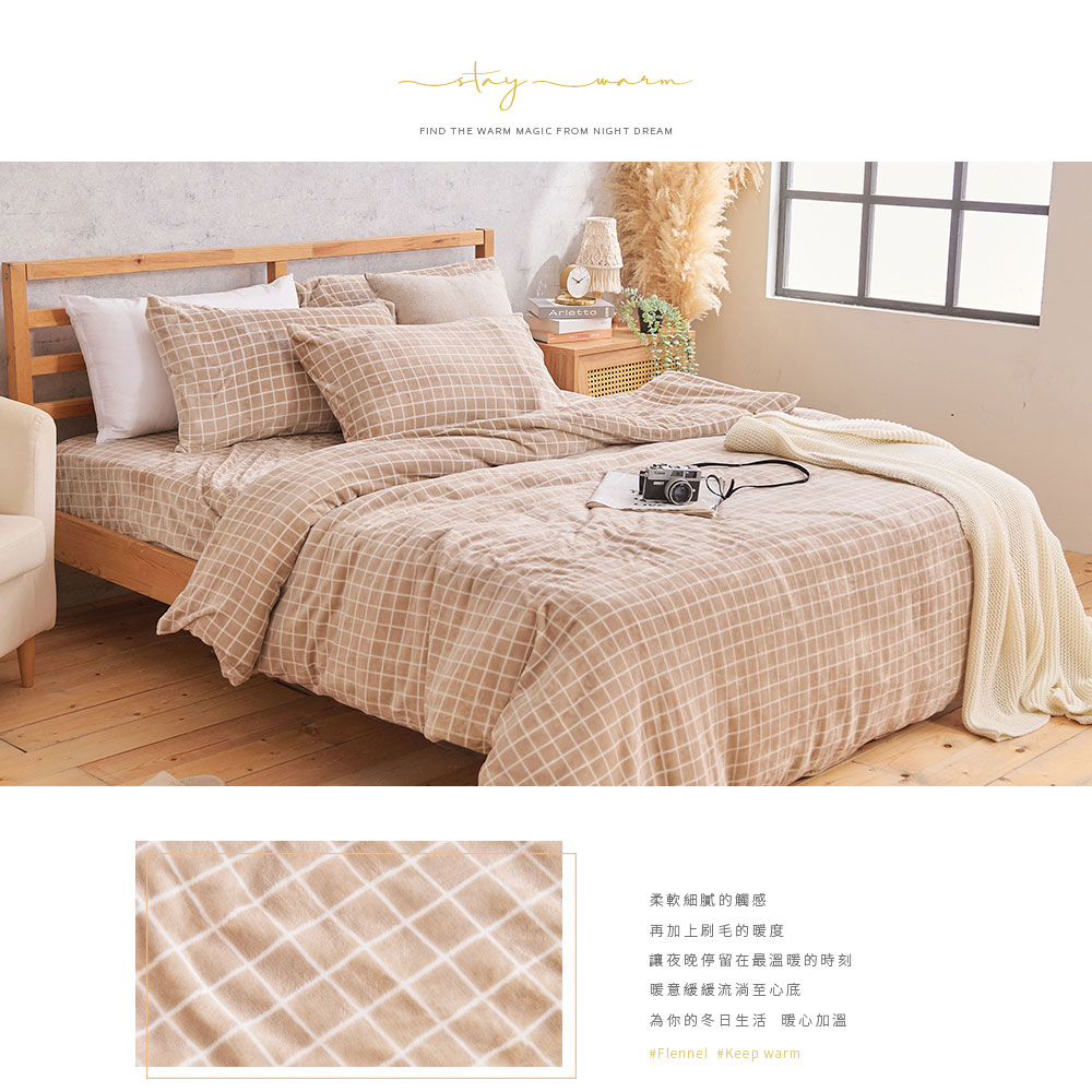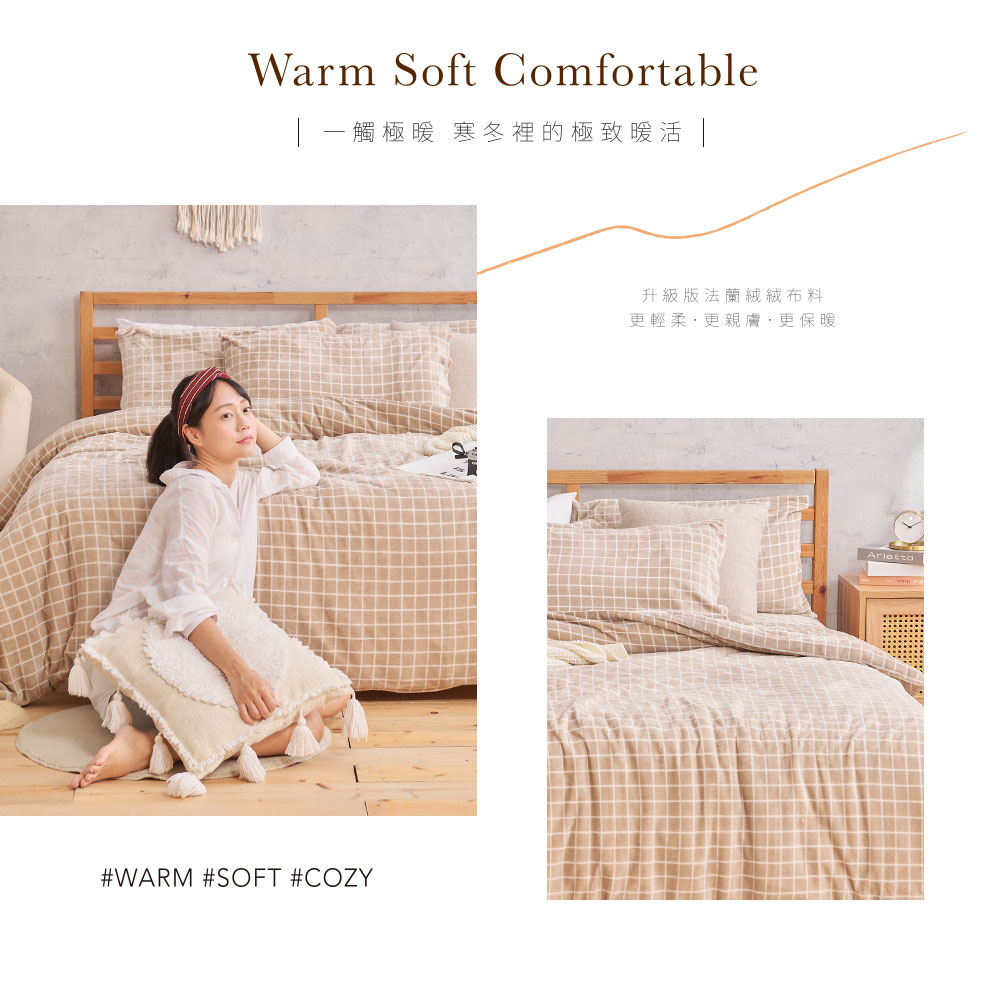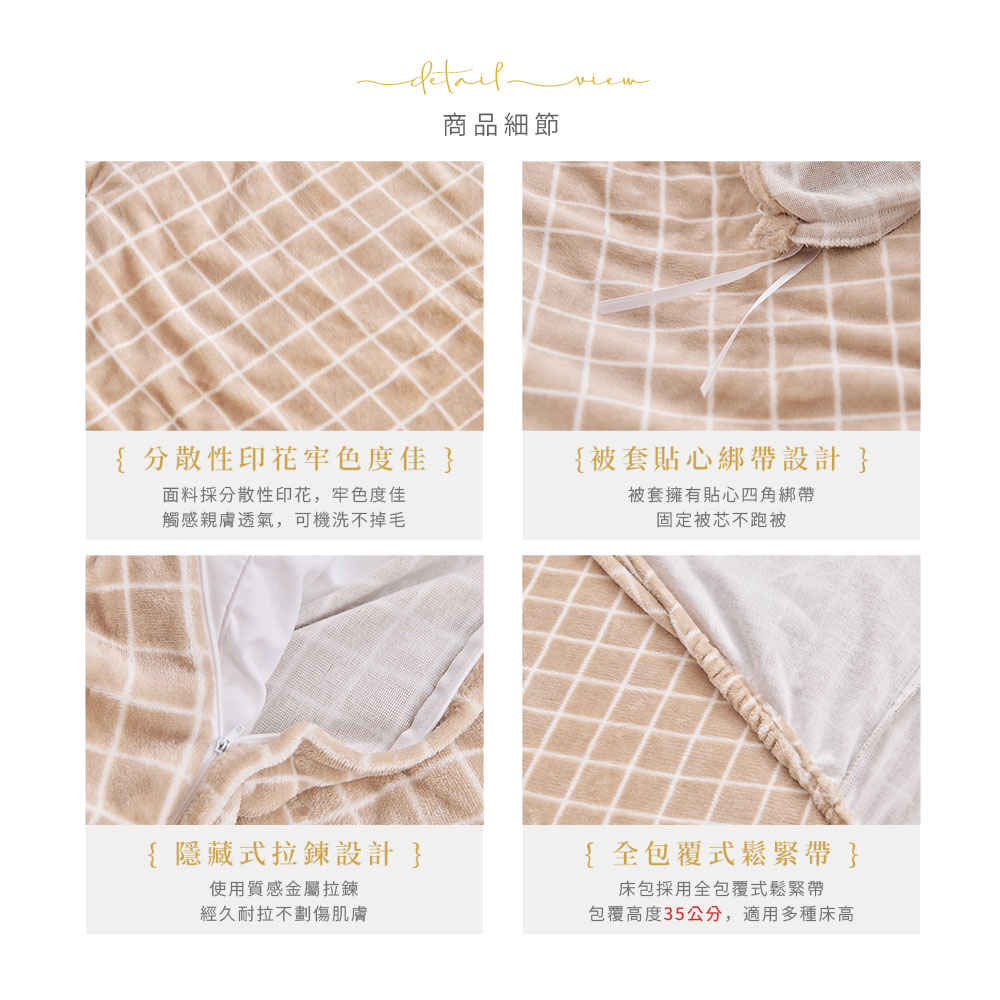 【DUYAN 竹漾】法蘭絨雙人四件式床包兩用毯被組 / 濃縮卡布