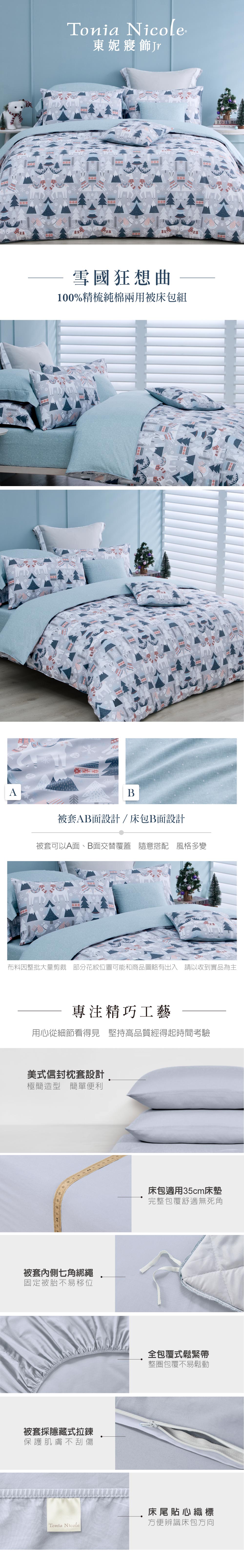 【Tonia Nicole 東妮寢飾Jr】雪國狂想曲100%精梳棉兩用被床包組(雙人)