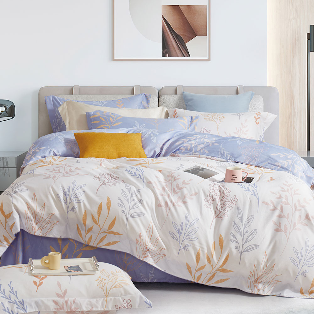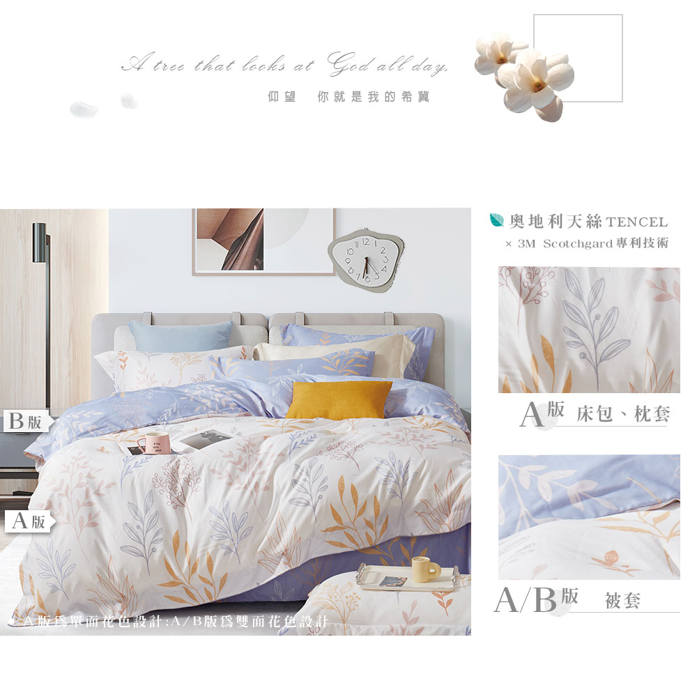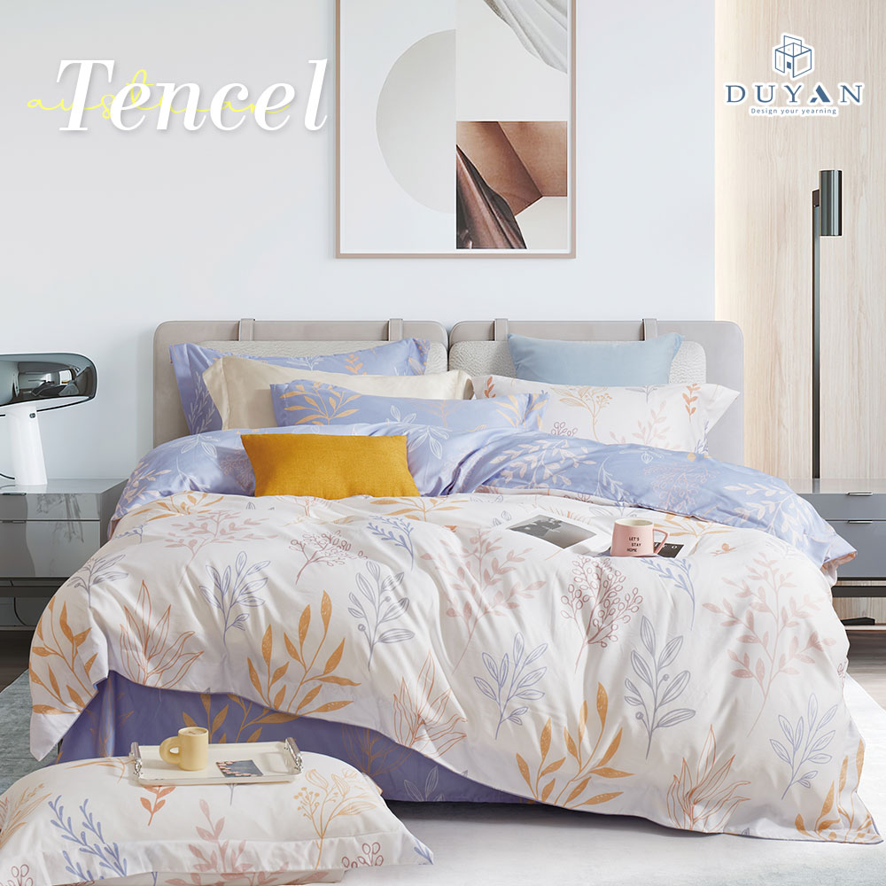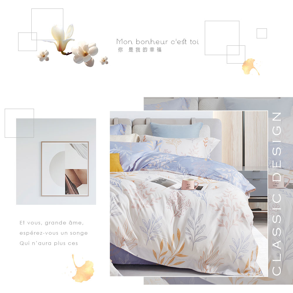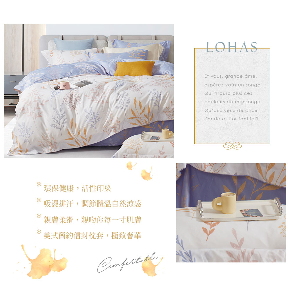 【DUYAN 竹漾】萊賽爾纖維雙人四件式鋪棉兩用被床包組 / 芷葉盼夏 台灣製