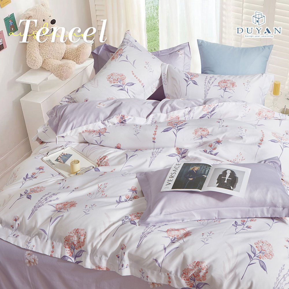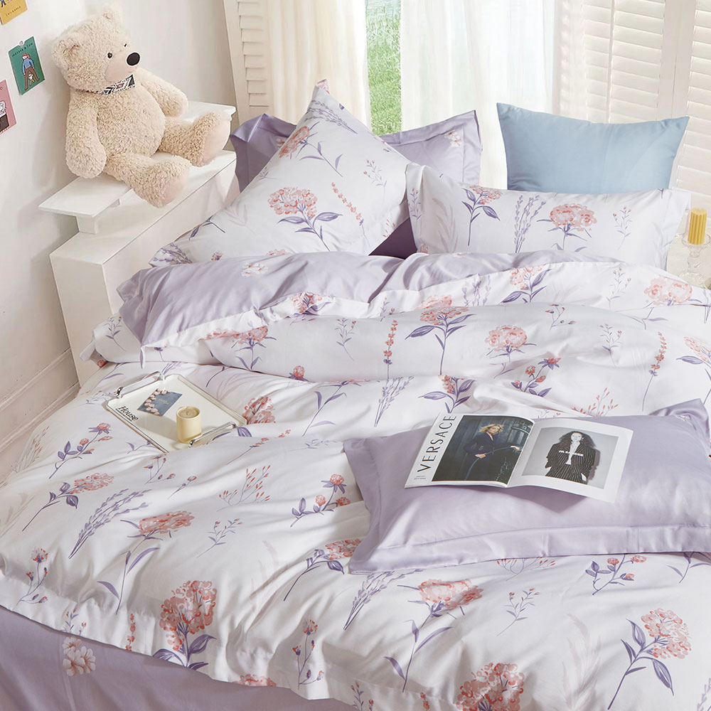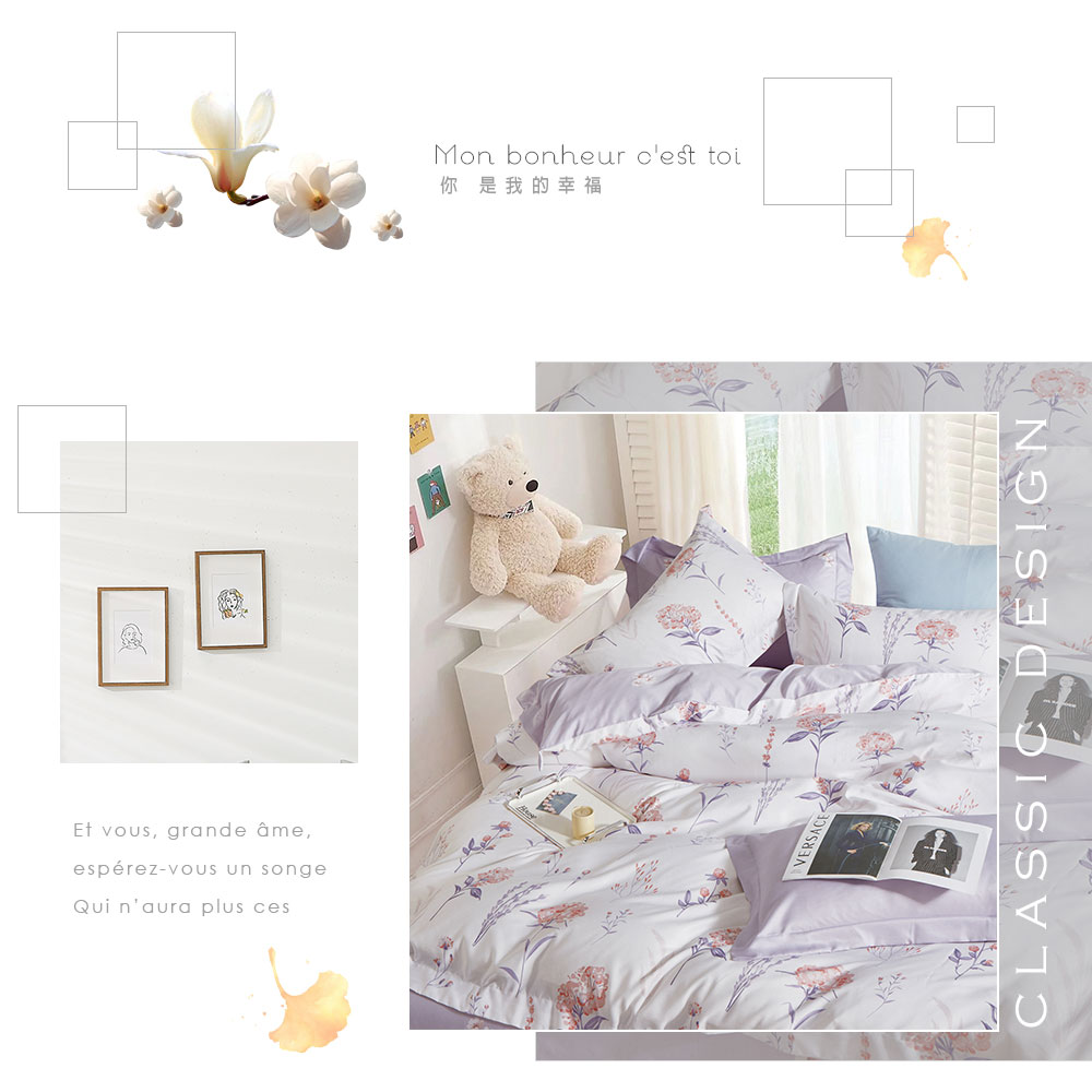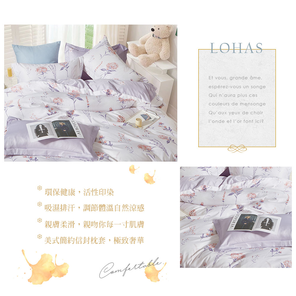 【DUYAN 竹漾】萊賽爾纖維單人二件組+雙人鋪棉兩用被 / 紫晴粉卉 台灣製