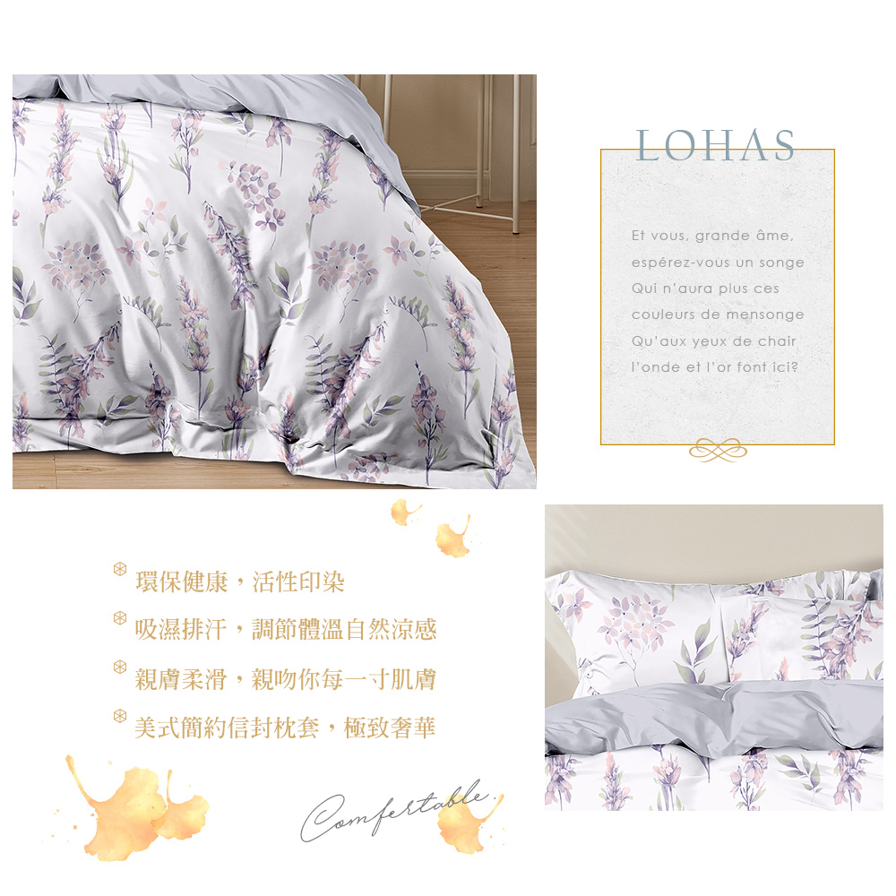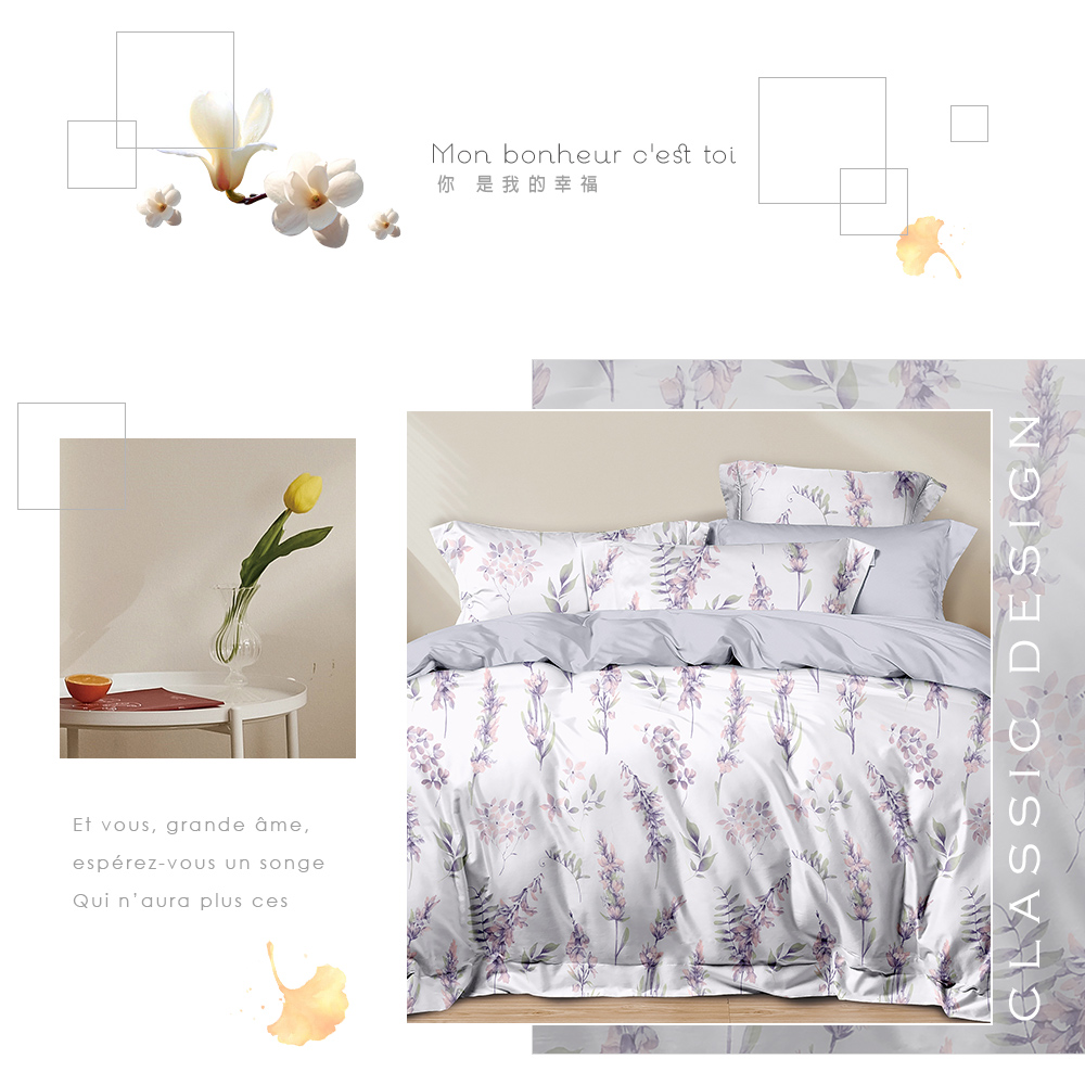 【DUYAN 竹漾】萊賽爾纖維雙人床包三件組 / 飛花若紫 台灣製