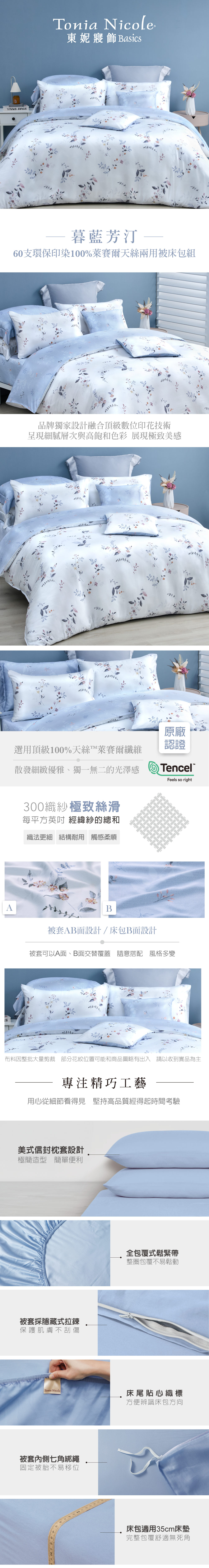 【Tonia Nicole 東妮寢飾】暮藍芳汀60支環保印染100%萊賽爾天絲兩用被床包組(加大)