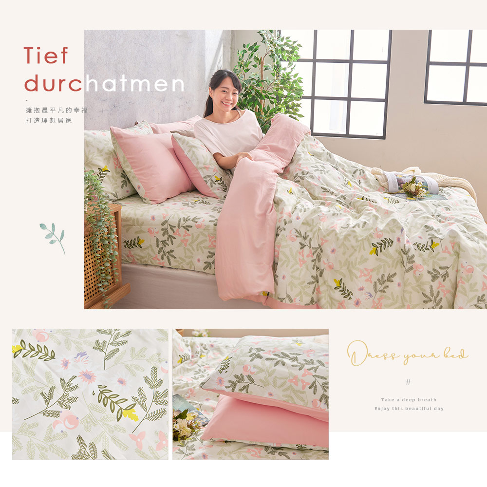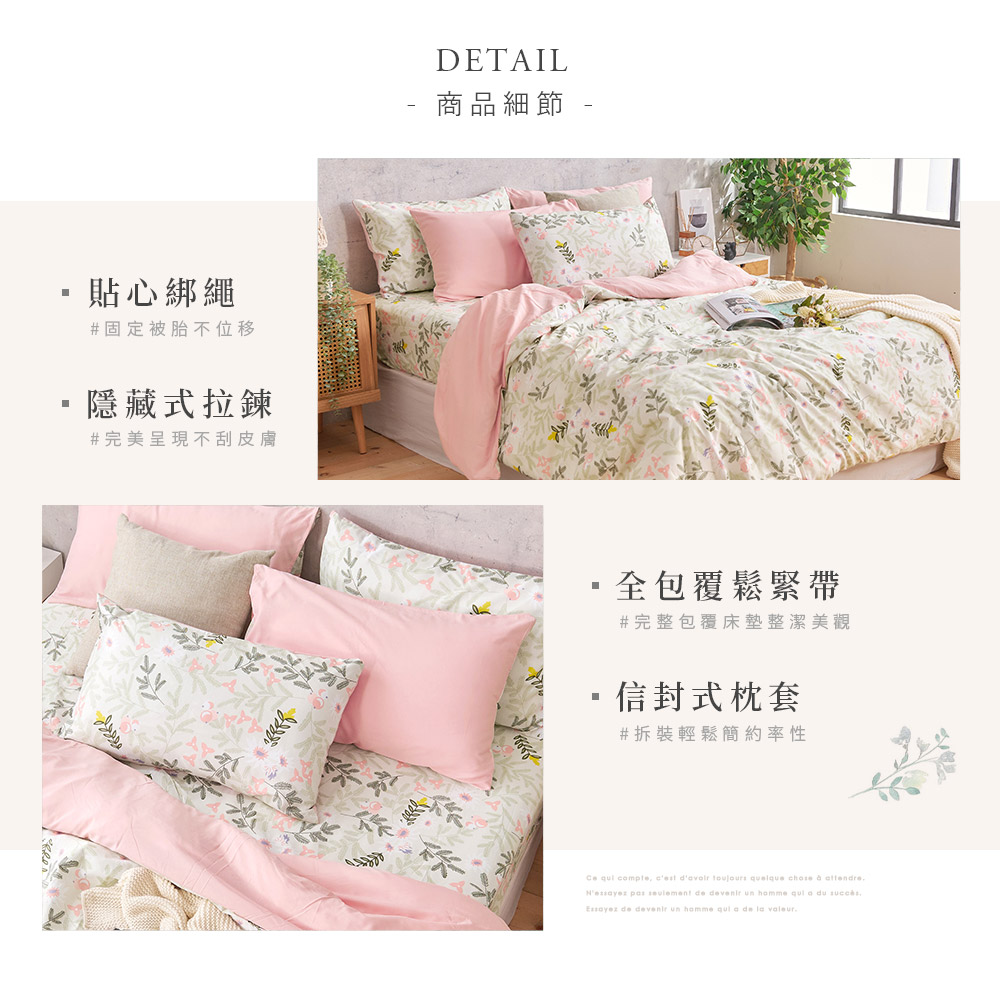 【DUYAN 竹漾】床包被套組(鋪棉兩用被套)-雙人 / 舒柔棉四件式 / 唯莓戀語