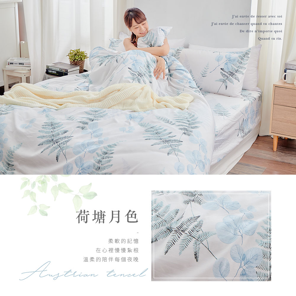 【DUYAN 竹漾】萊賽爾纖維單人二件組+雙人鋪棉兩用被 / 荷塘月色 台灣製