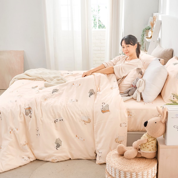 【DUYAN 竹漾】萊賽爾纖維雙人四件式鋪棉兩用被床包組 / 尋覓小貓 台灣製