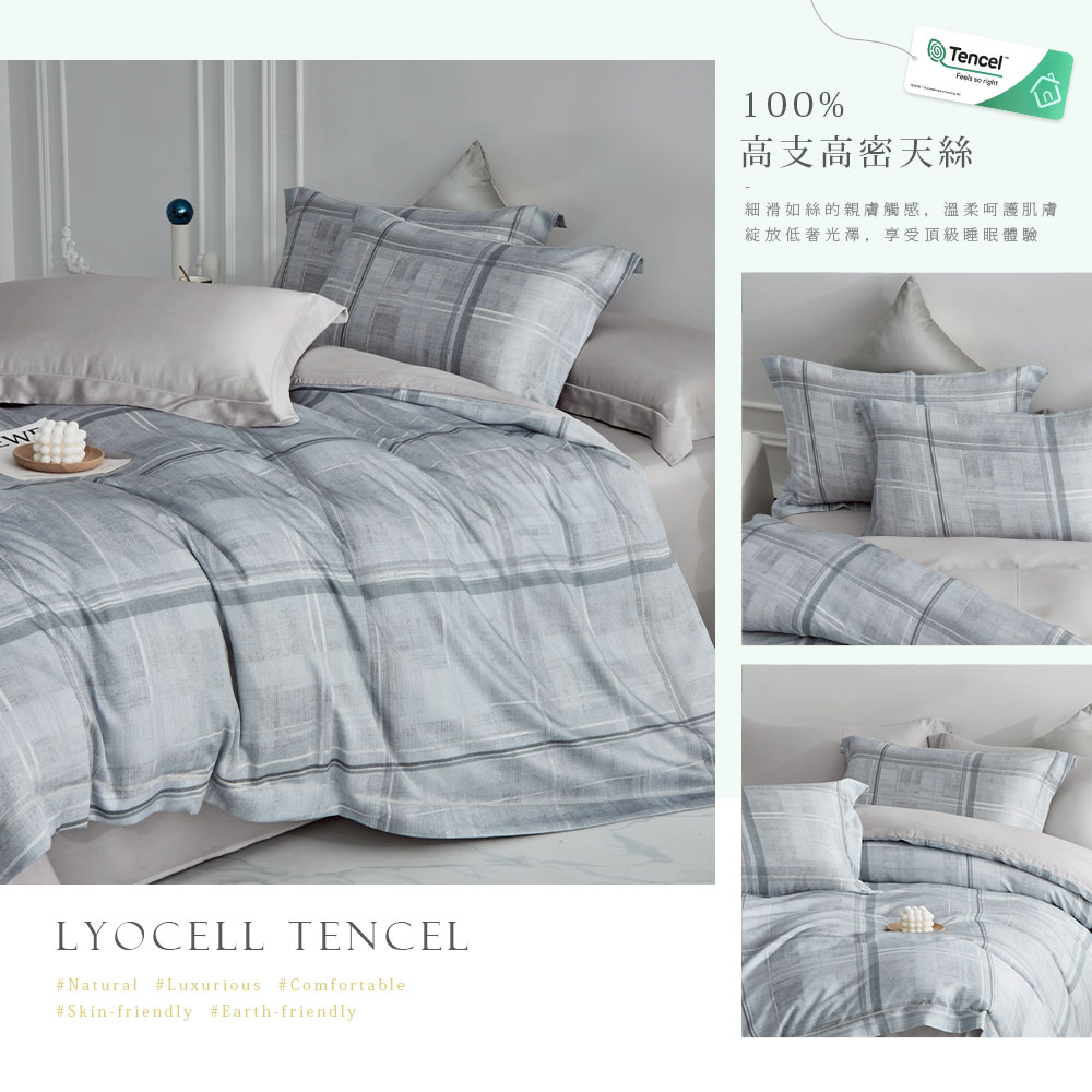 【DUYAN 竹漾】60支萊賽爾天絲雙人加大四件式鋪棉兩用被床包組 / 寂霧序章 台灣製