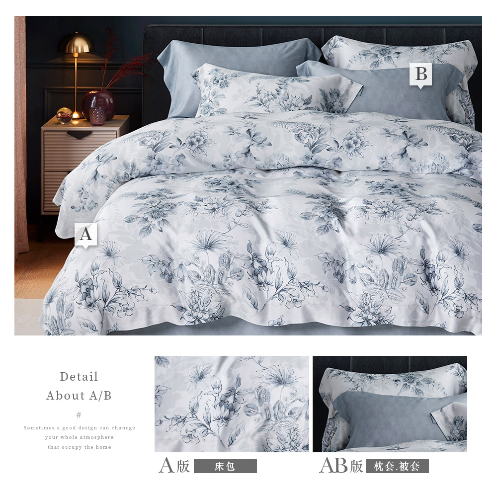 【DUYAN 竹漾】40支100%天絲雙人四件式鋪棉兩用被床包組 / 望藍靜染 台灣製