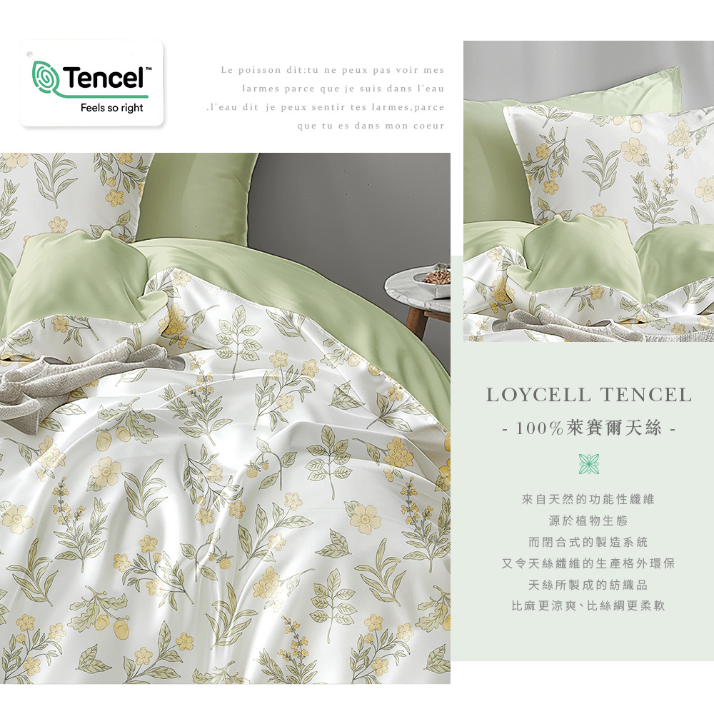 【DUYAN 竹漾】40支100%天絲雙人四件式鋪棉兩用被床包組 / 花間若水 台灣製