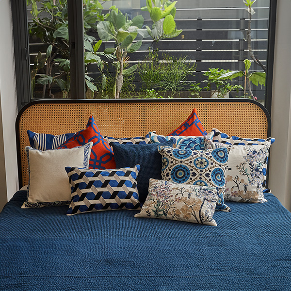 Ks|洛迪花園 刺繡靠墊套抱枕 | 藍/白 花寓 (50x50cm,含靠墊芯)