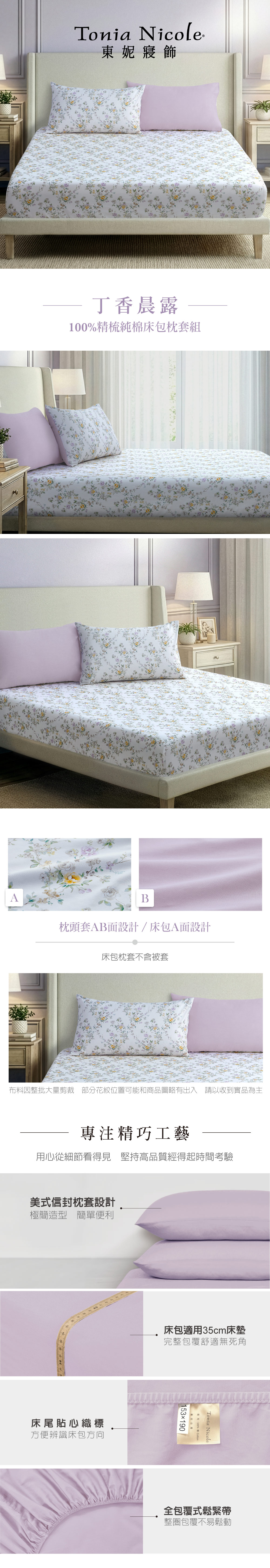 【Tonia Nicole 東妮寢飾】丁香晨露100%精梳棉床包枕套組(加大)