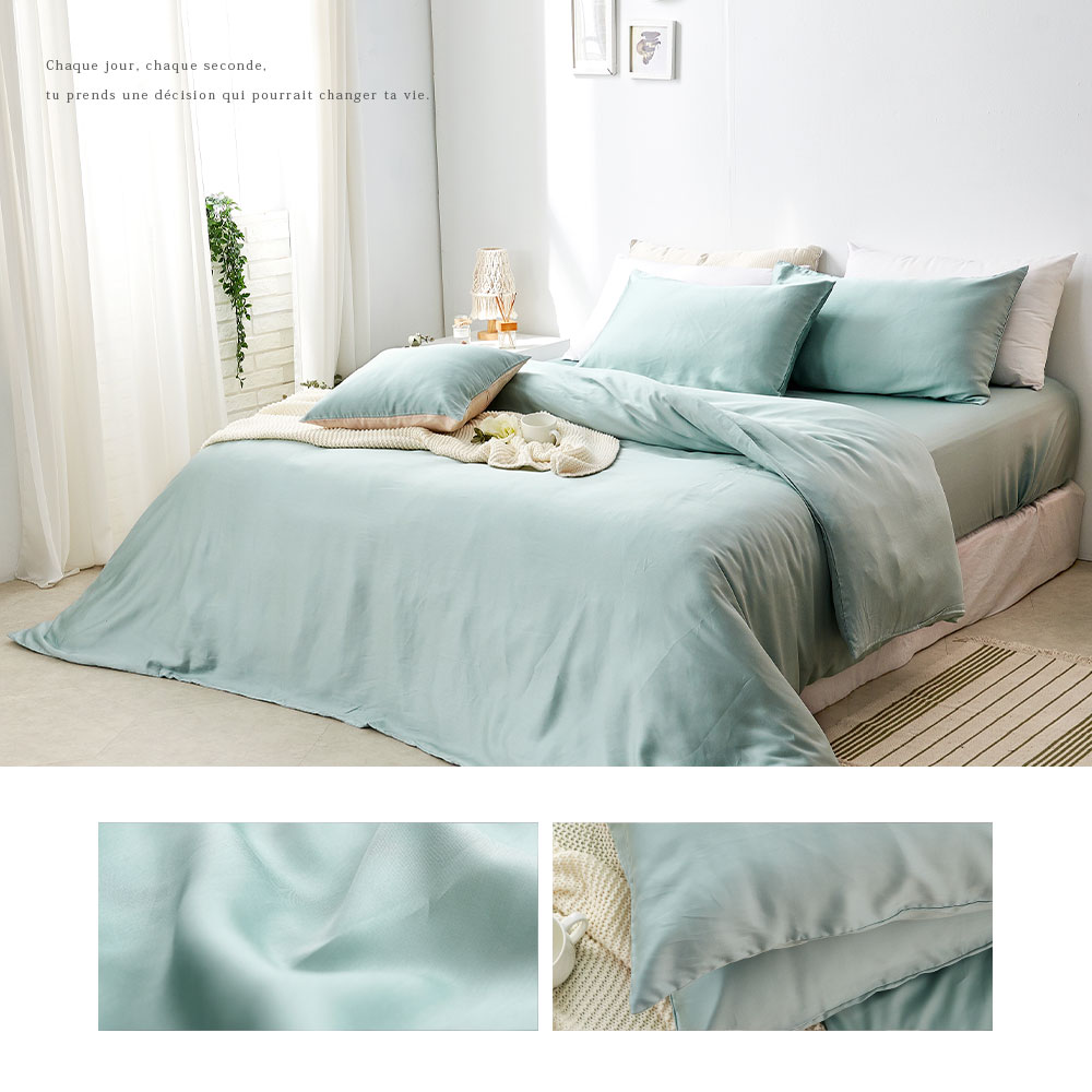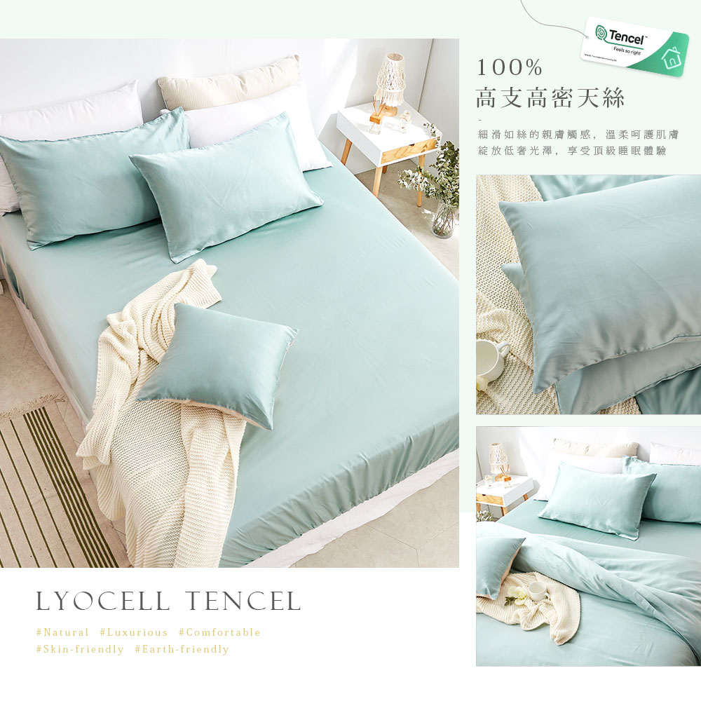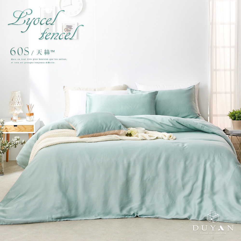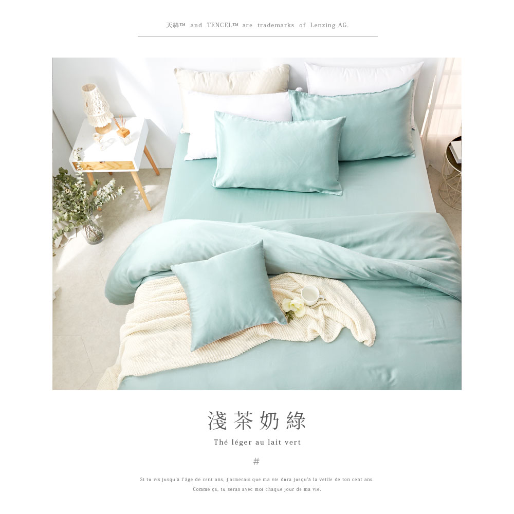 【DUYAN 竹漾】60支萊賽爾天絲雙人特大床包被套四件組 / 淺茶奶綠 台灣製