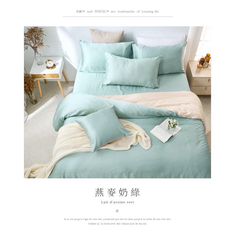 【DUYAN 竹漾】60支萊賽爾天絲雙人特大四件式鋪棉兩用被床包組 / 燕麥奶綠 台灣製