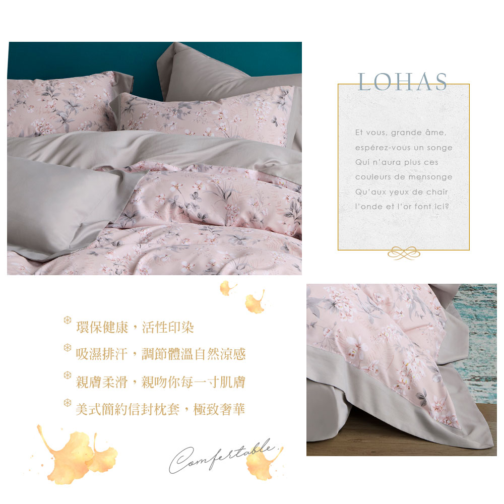 【DUYAN 竹漾】萊賽爾纖維雙人四件式鋪棉兩用被床包組 / 慕花輕夢 台灣製